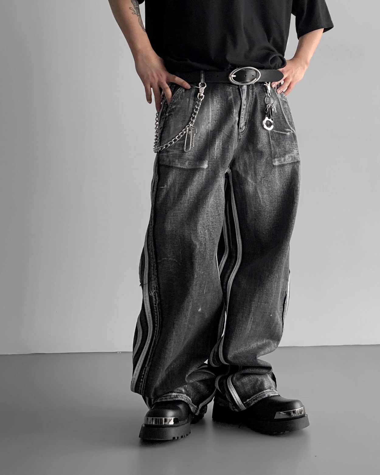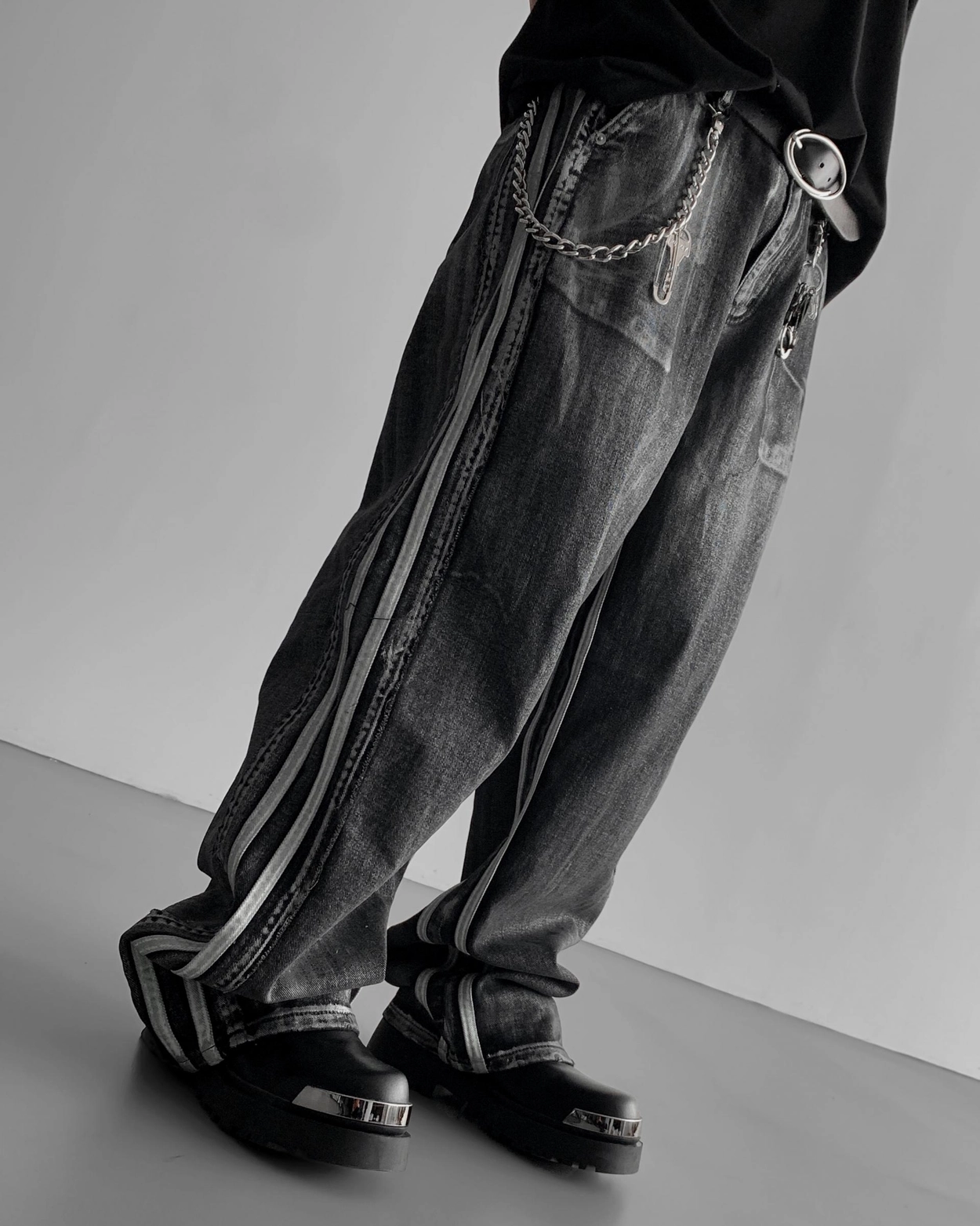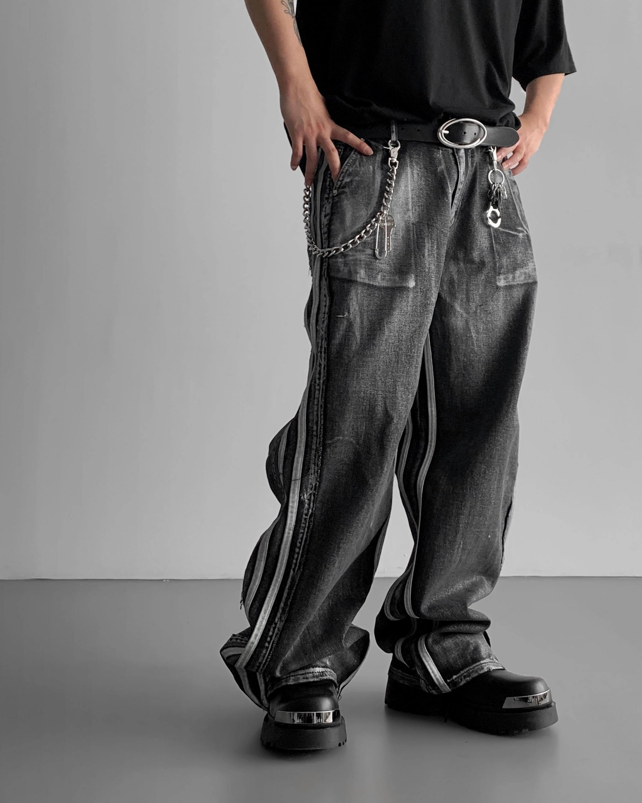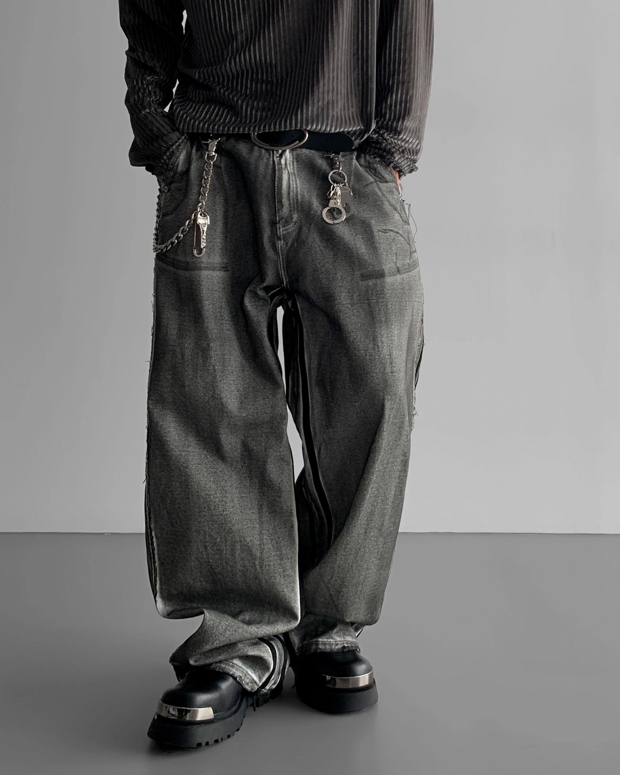 - 獨特水洗牛仔長褲