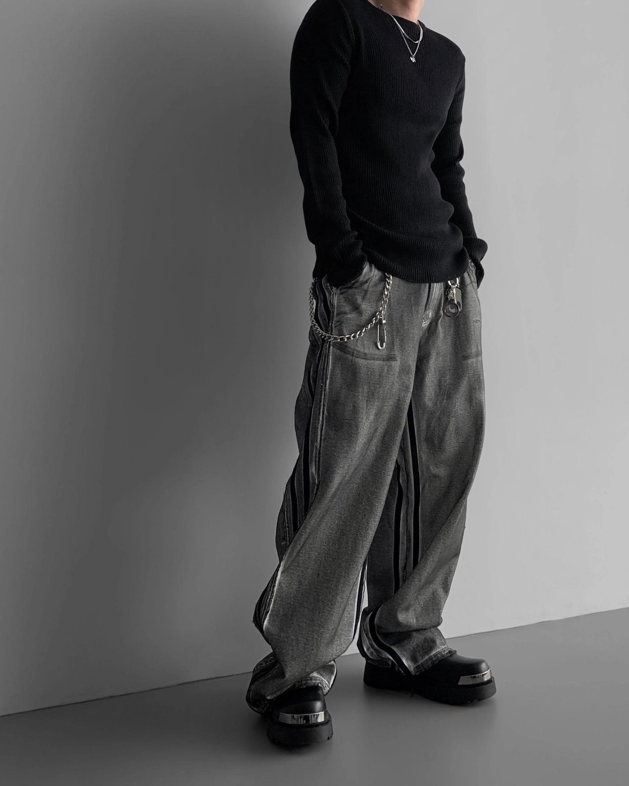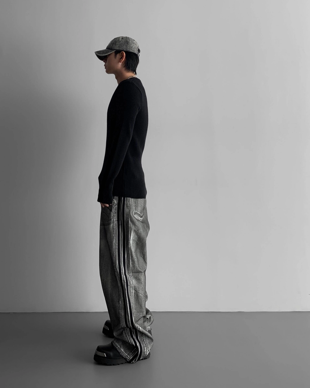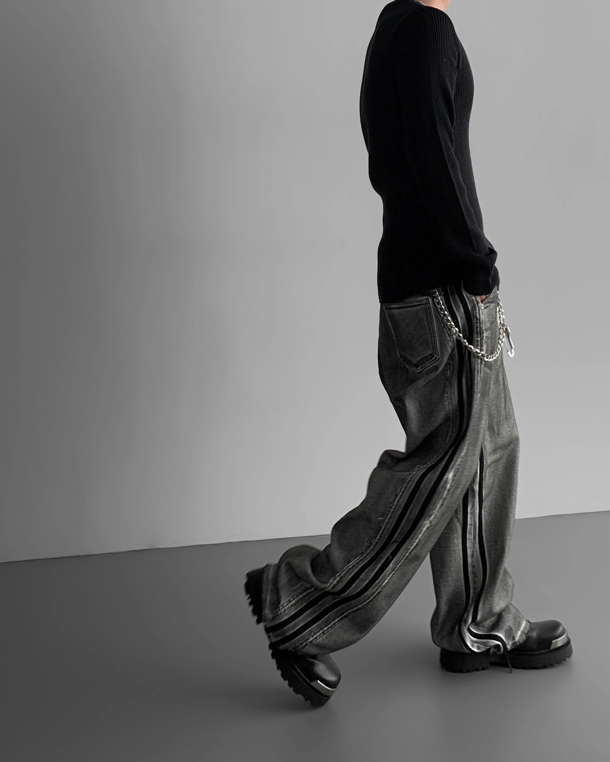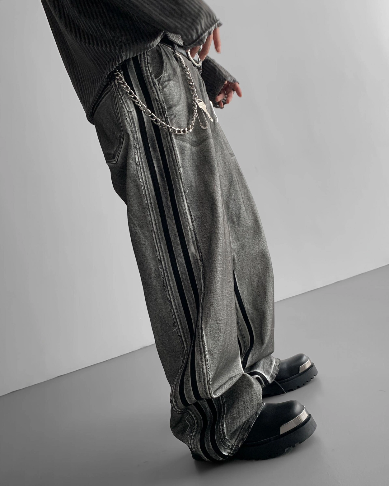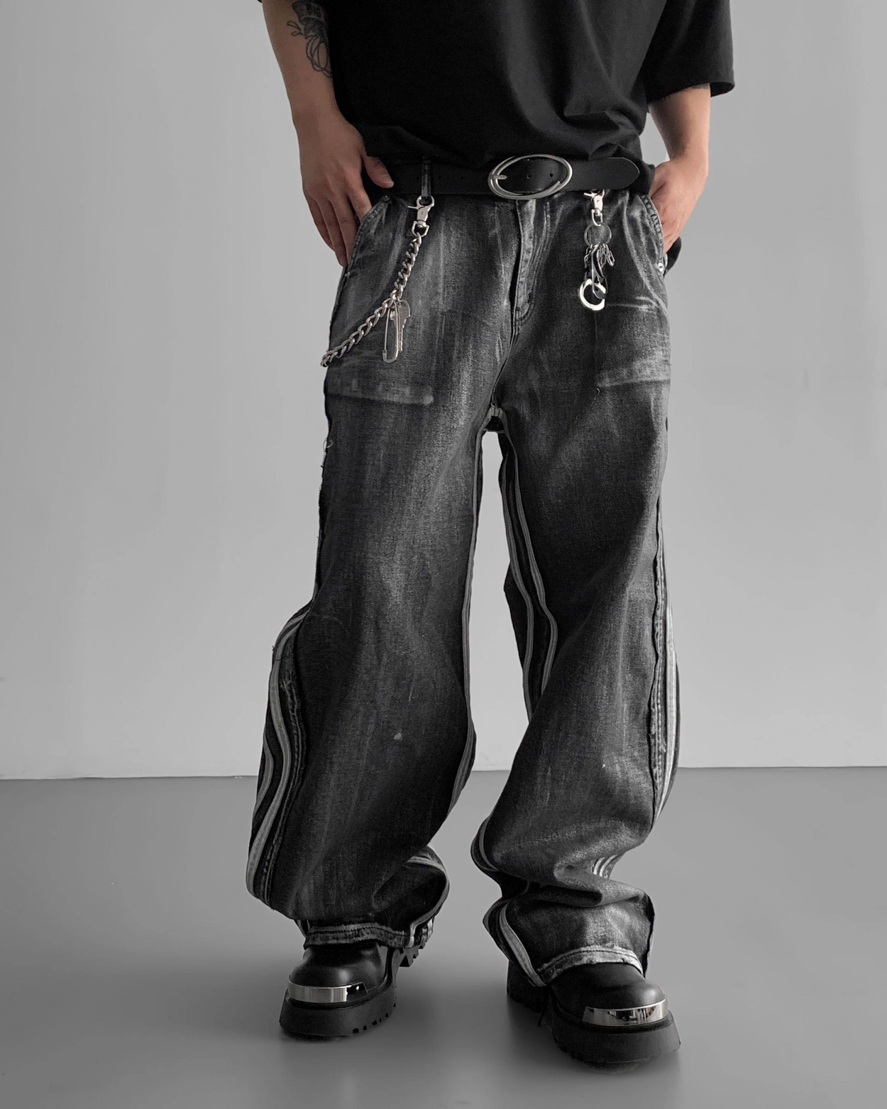 - 獨特水洗牛仔長褲