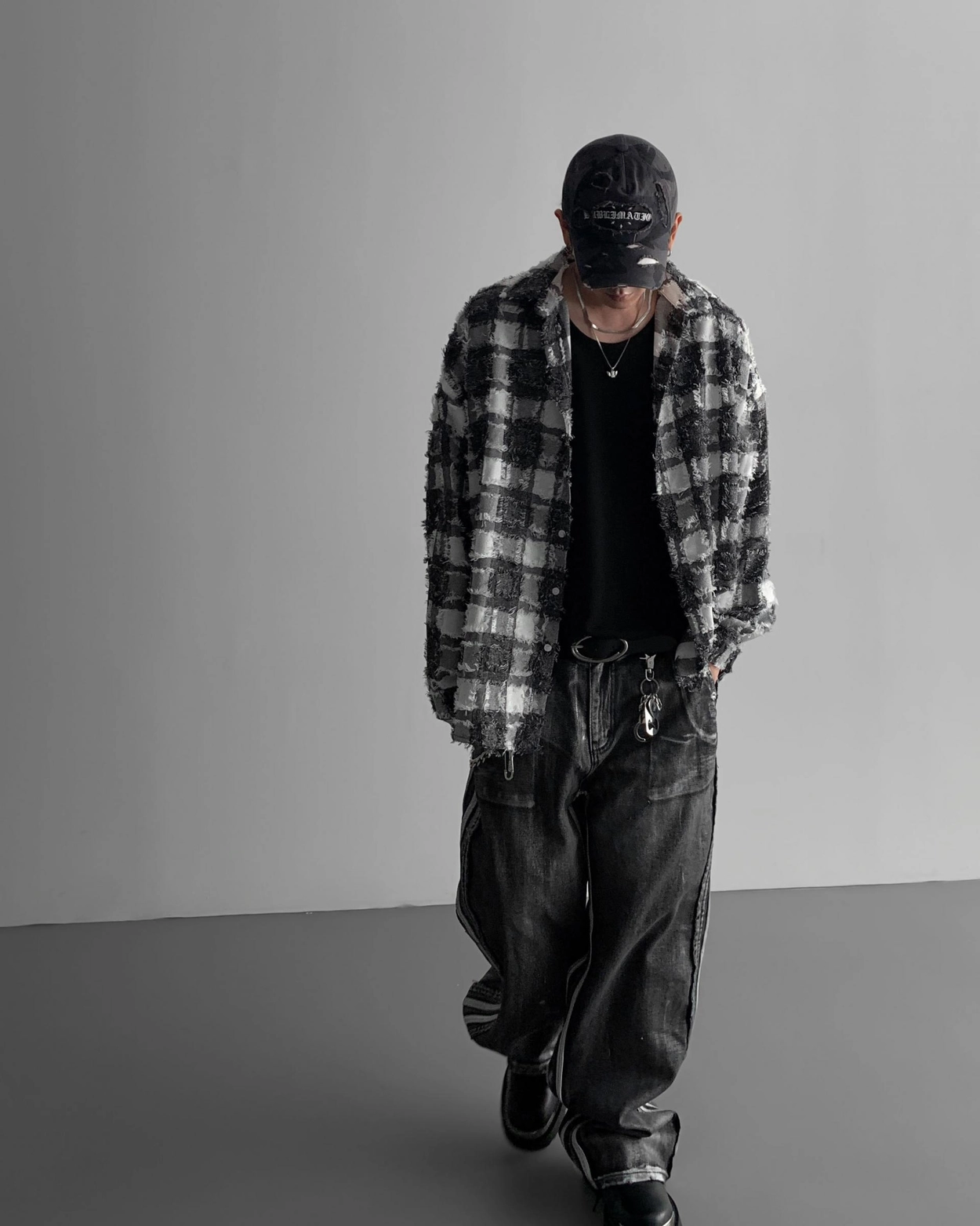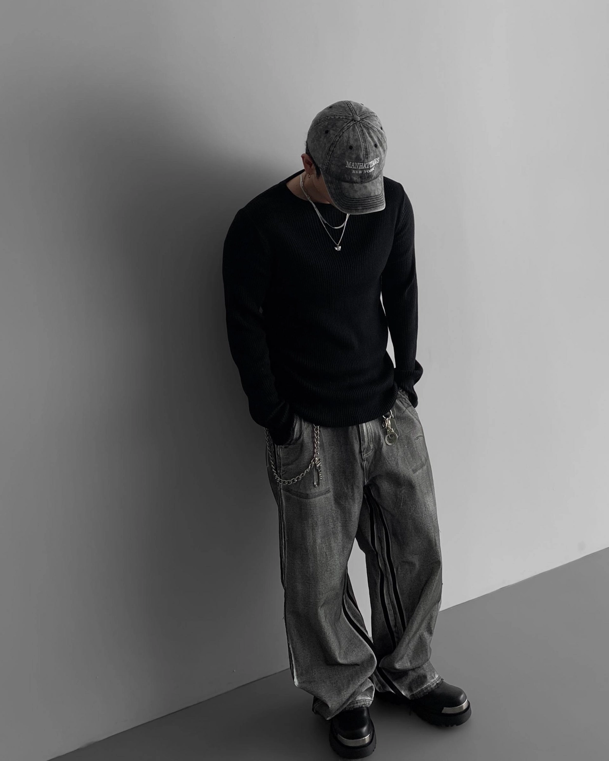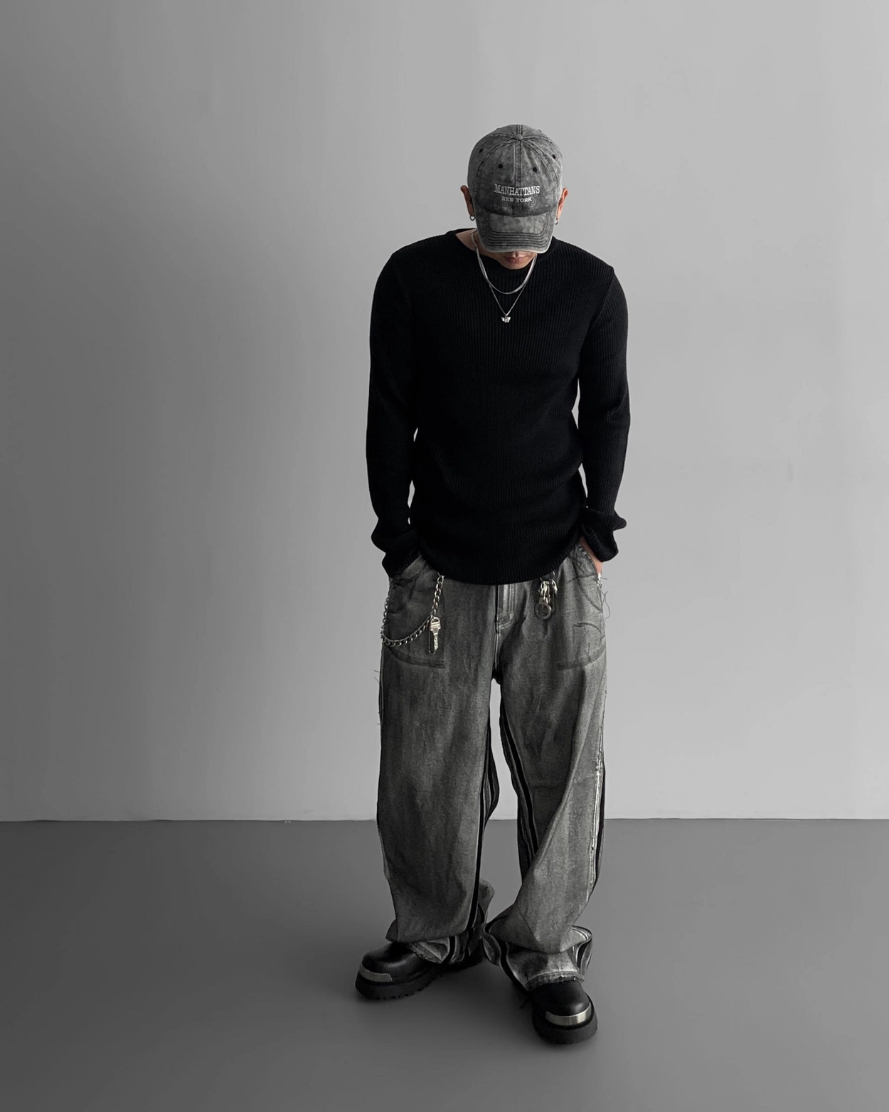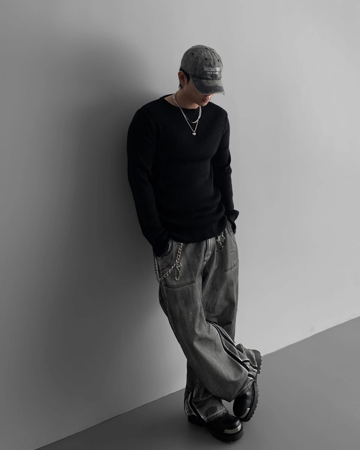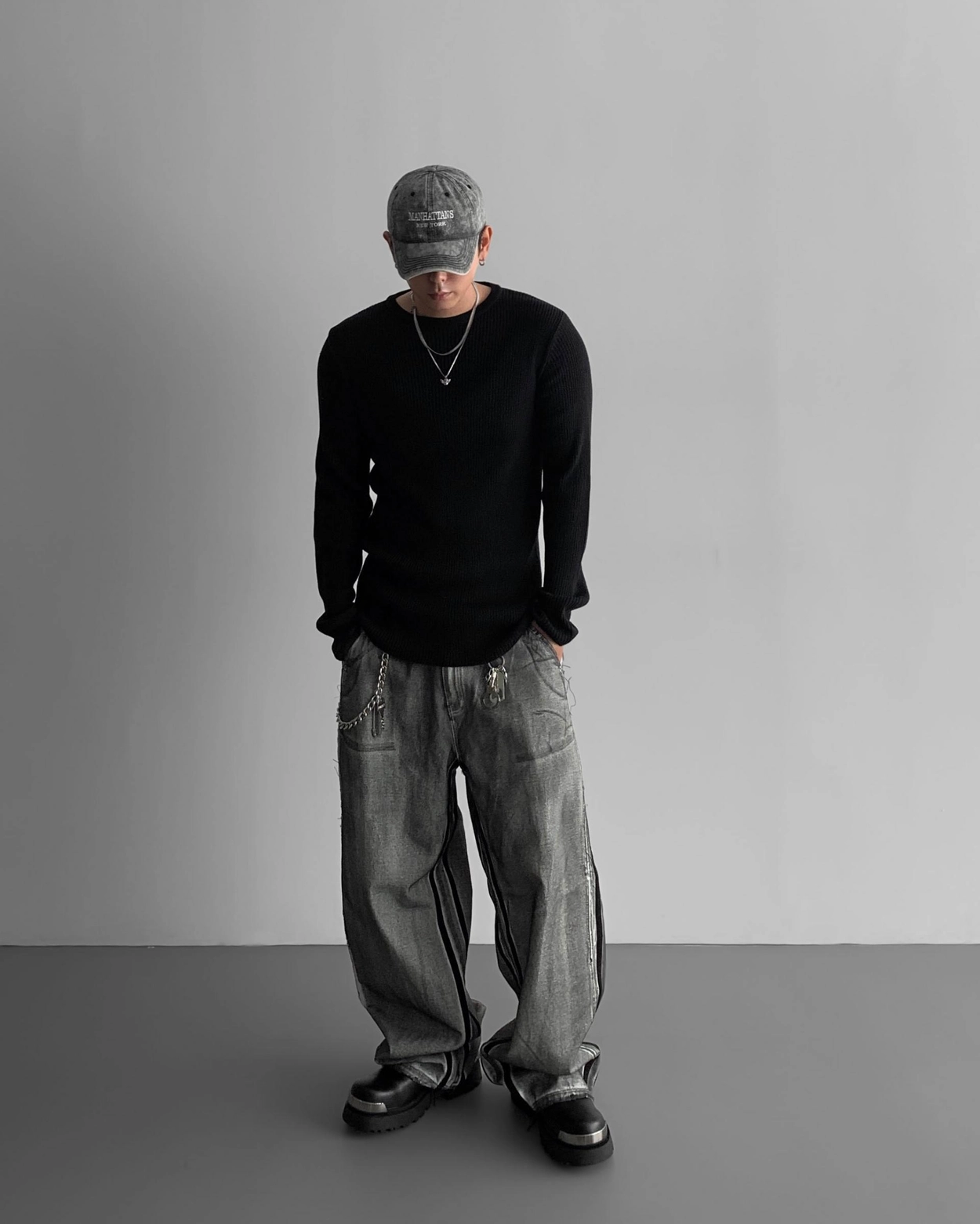 - 獨特水洗牛仔長褲