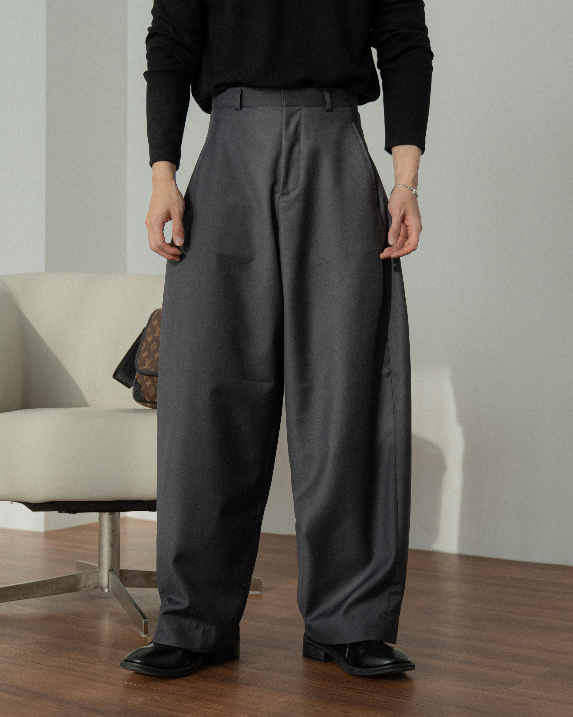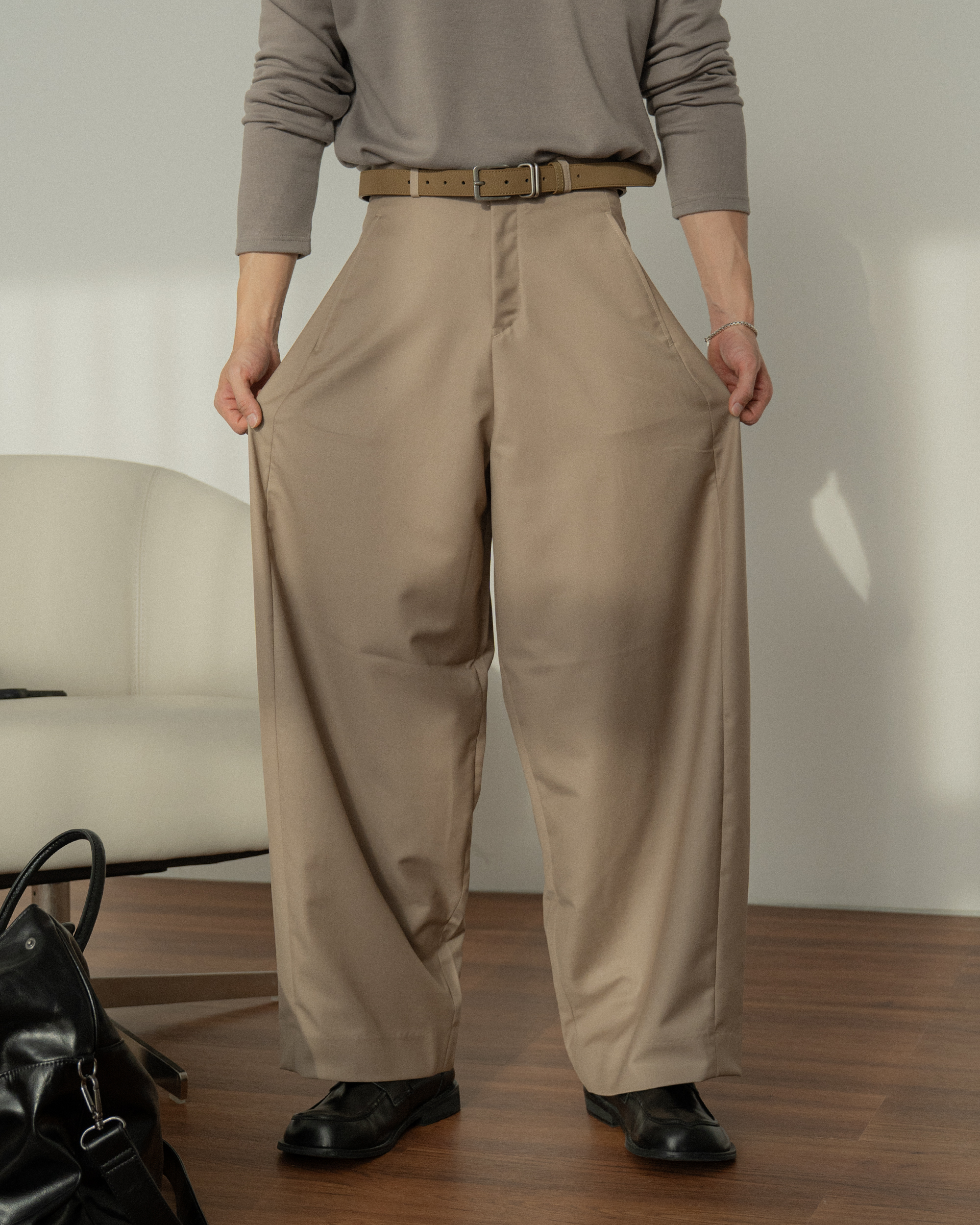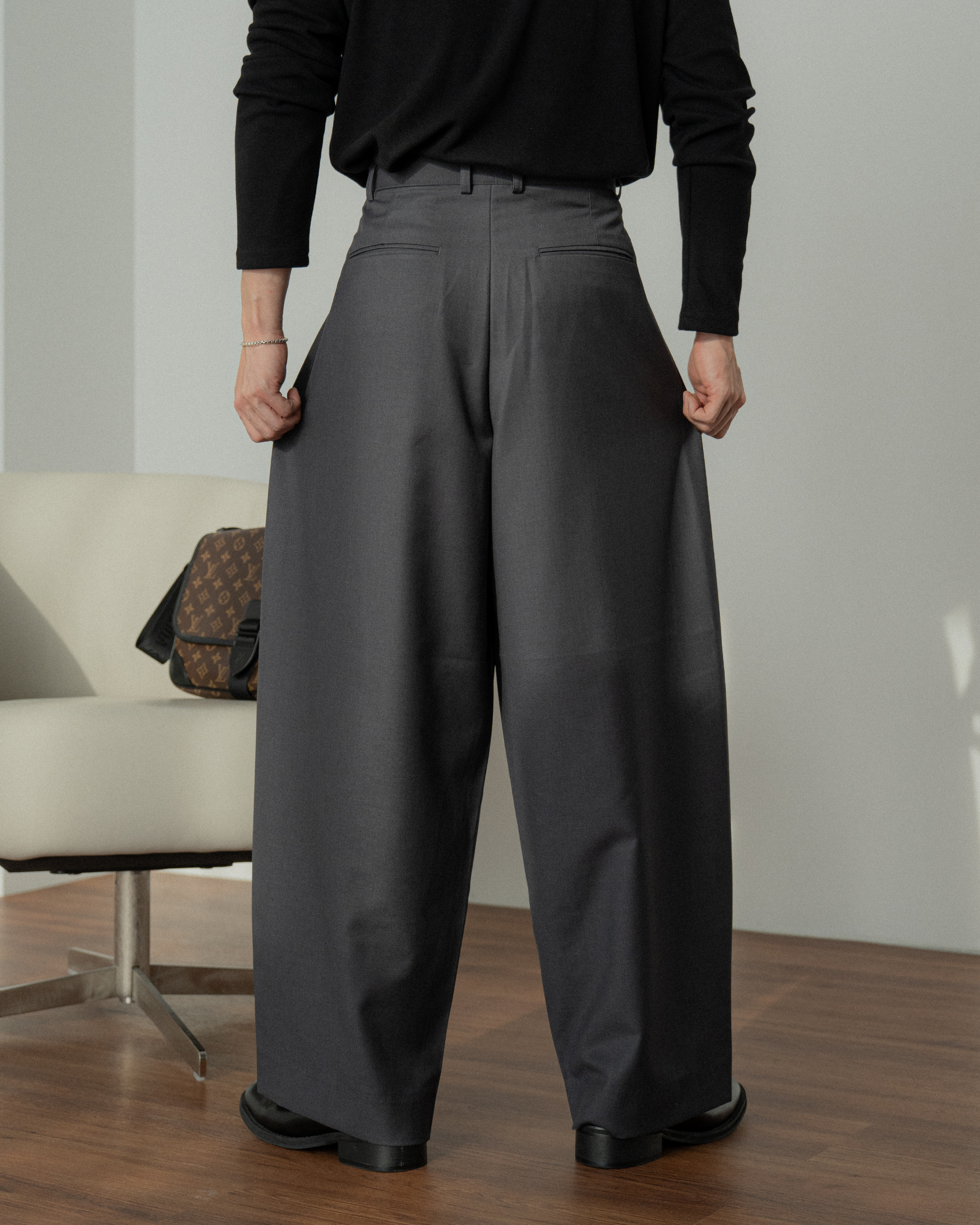 褲襠製作得長,顯得腿長活動性好。