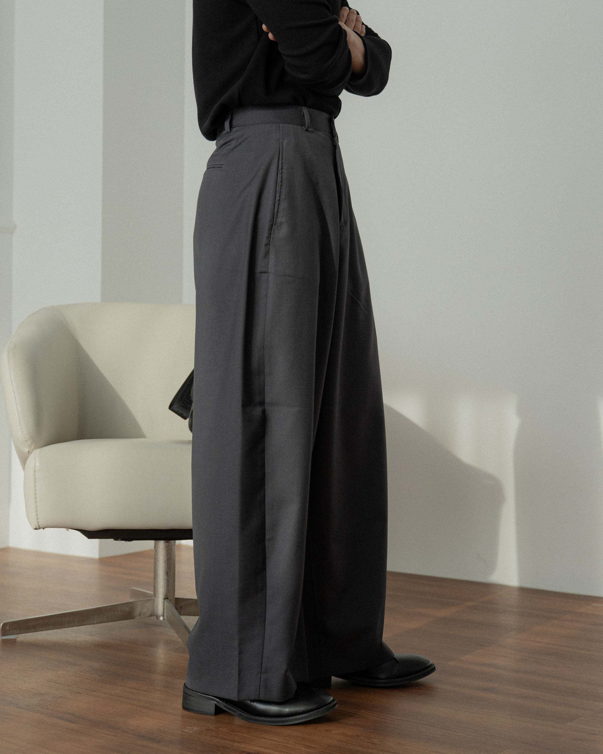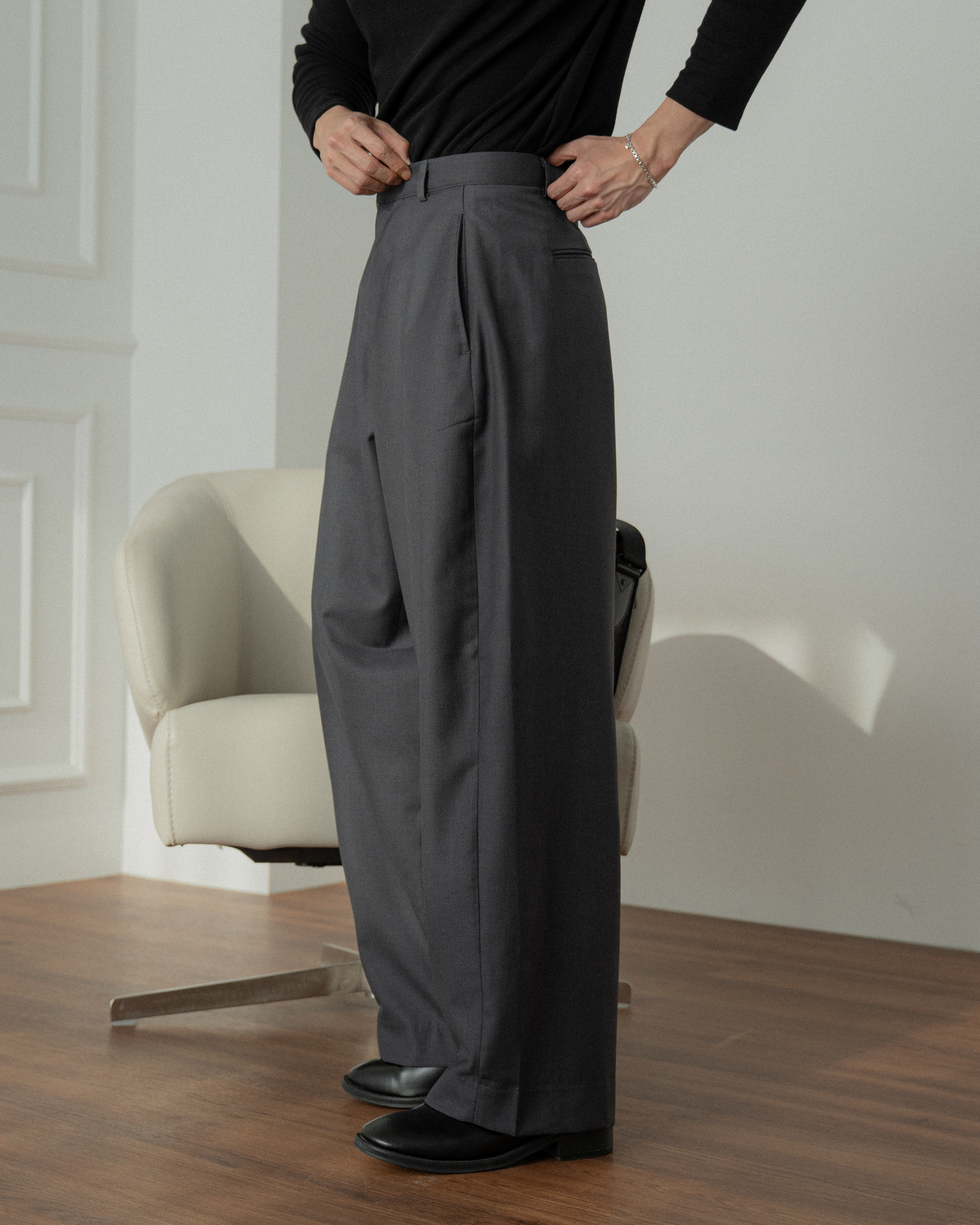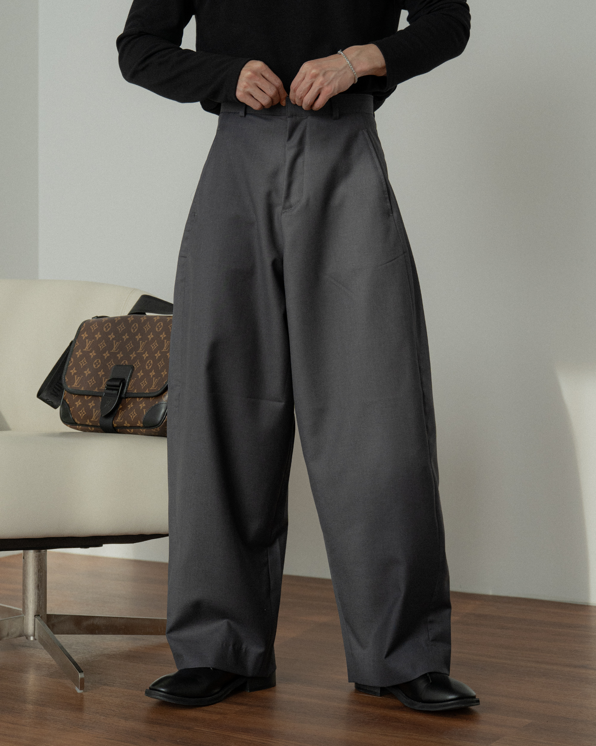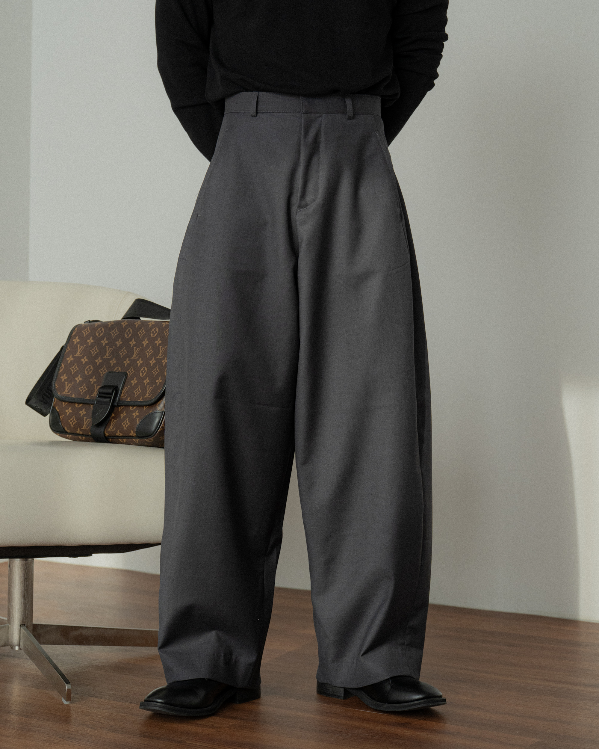 褲襠製作得長,顯得腿長活動性好。