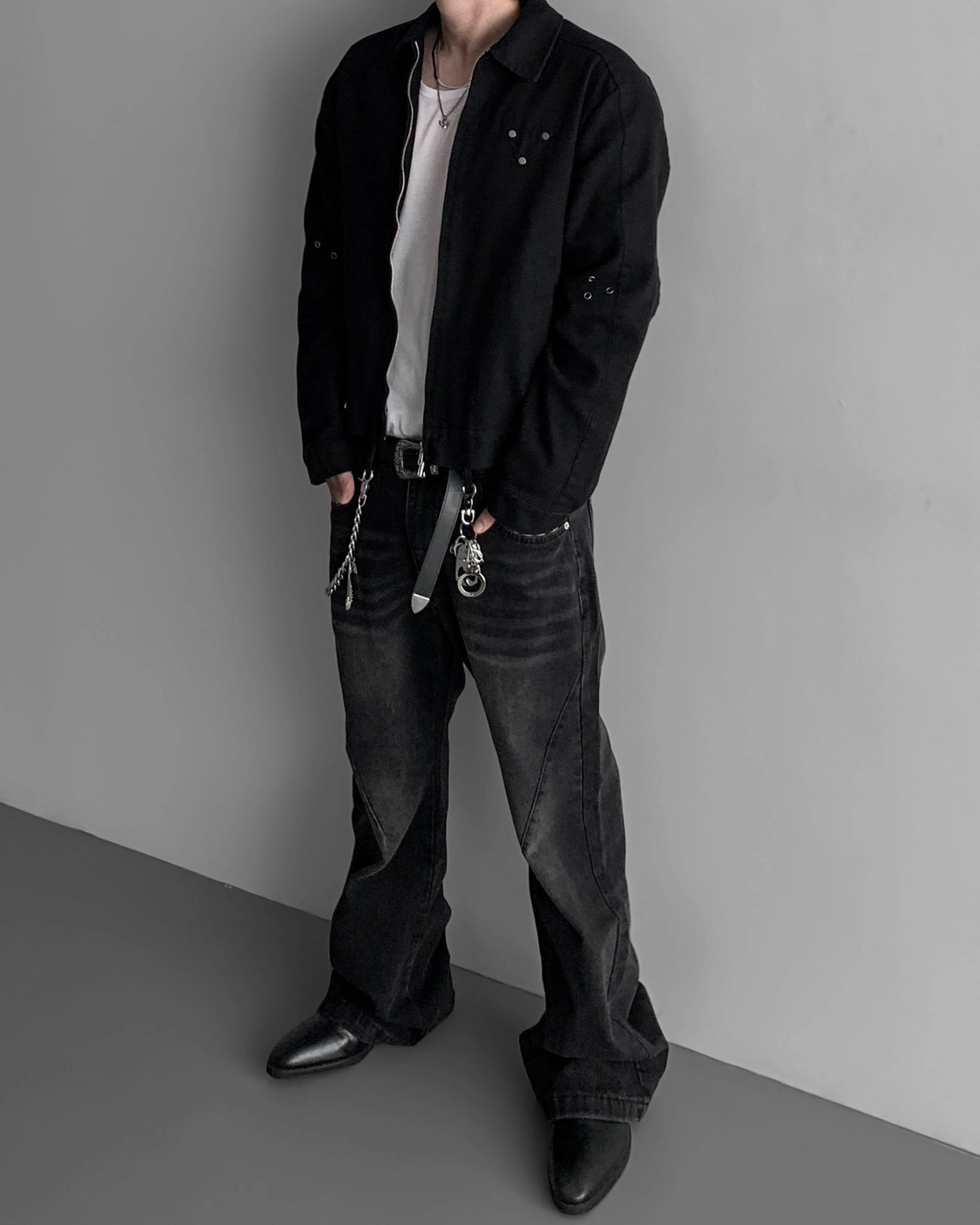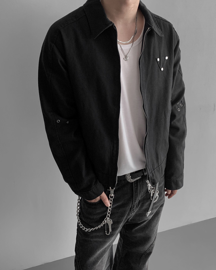 這是一款透過剪裁插肩袖和鉚釘細節打造時尚外觀的單品!