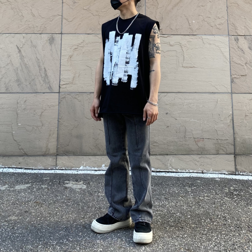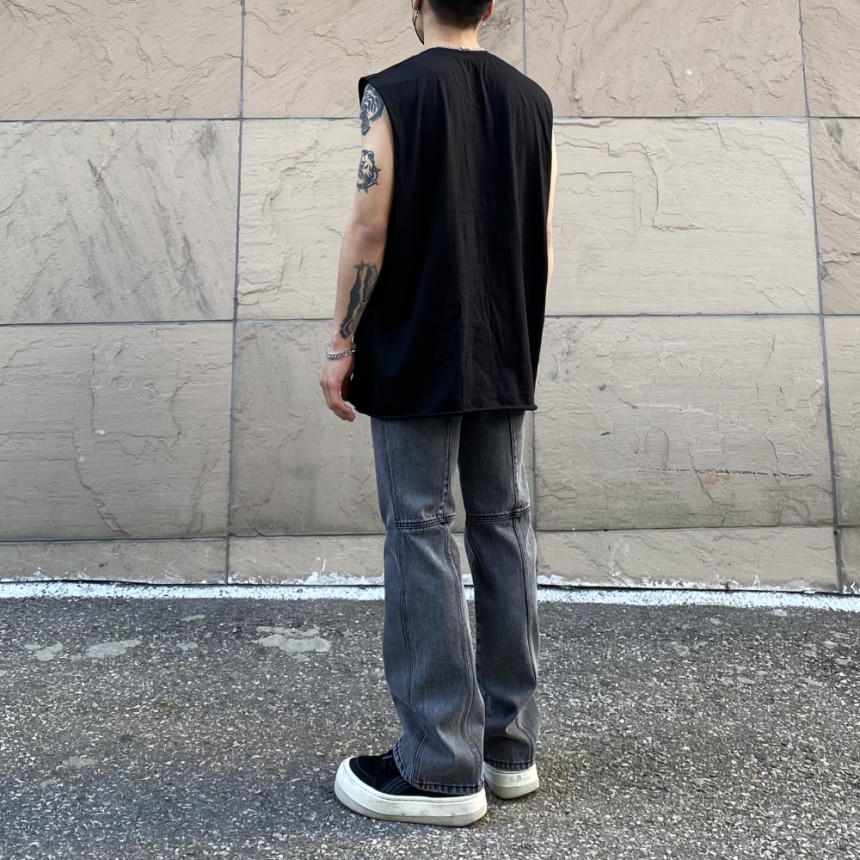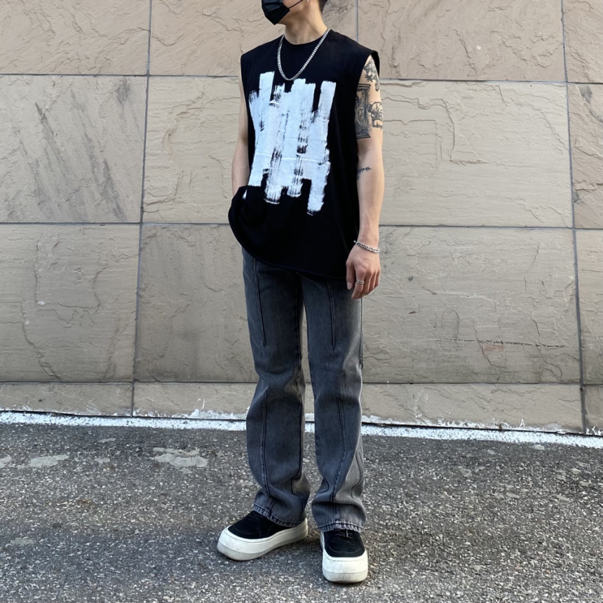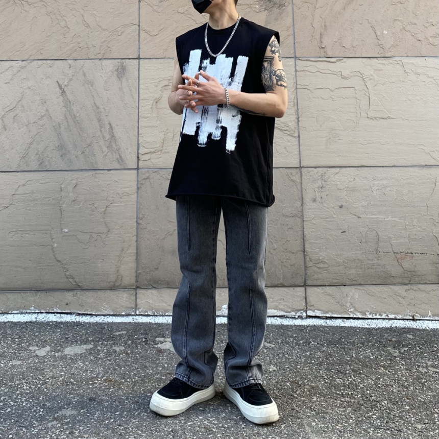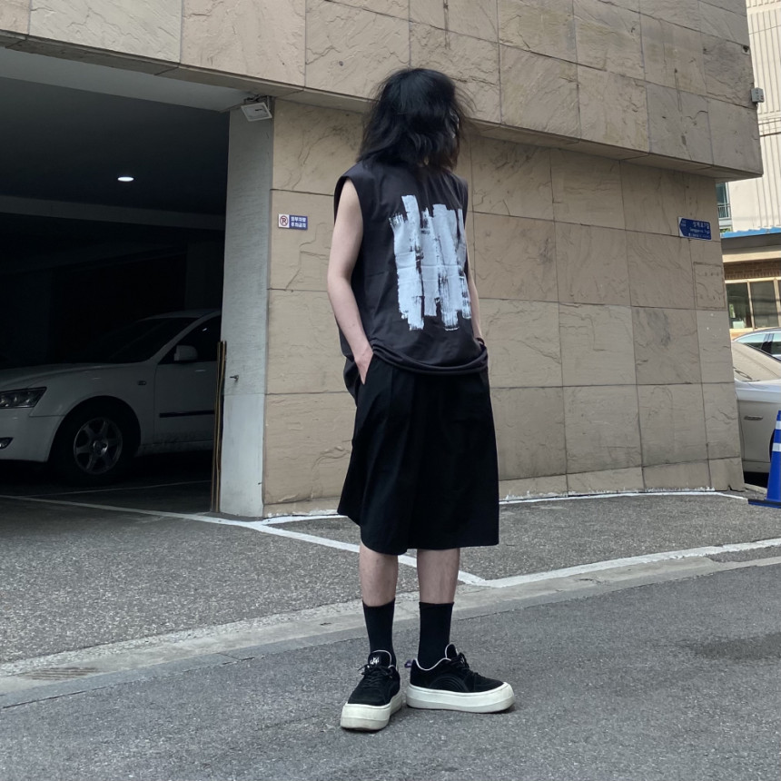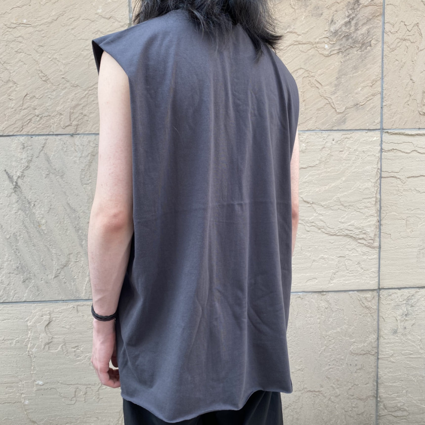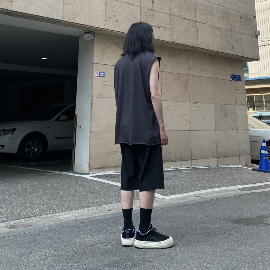 - 無袖長肩寬增加了街頭感,垂直落下的輪廓。