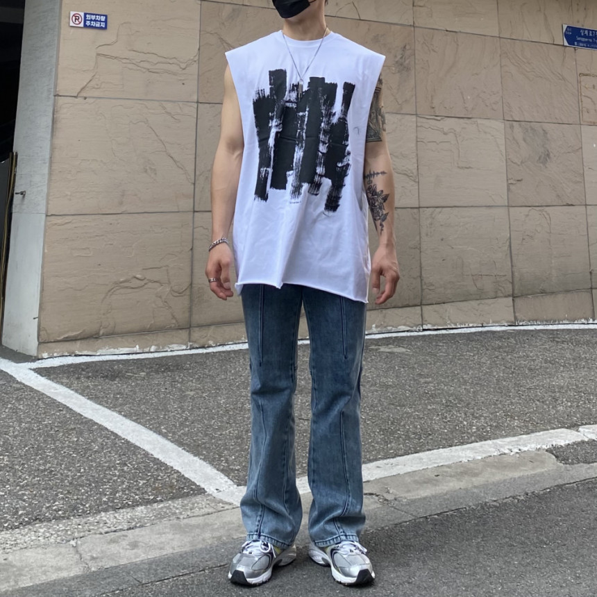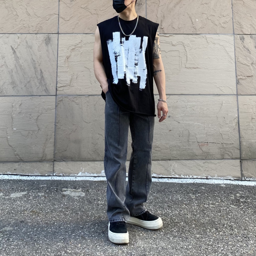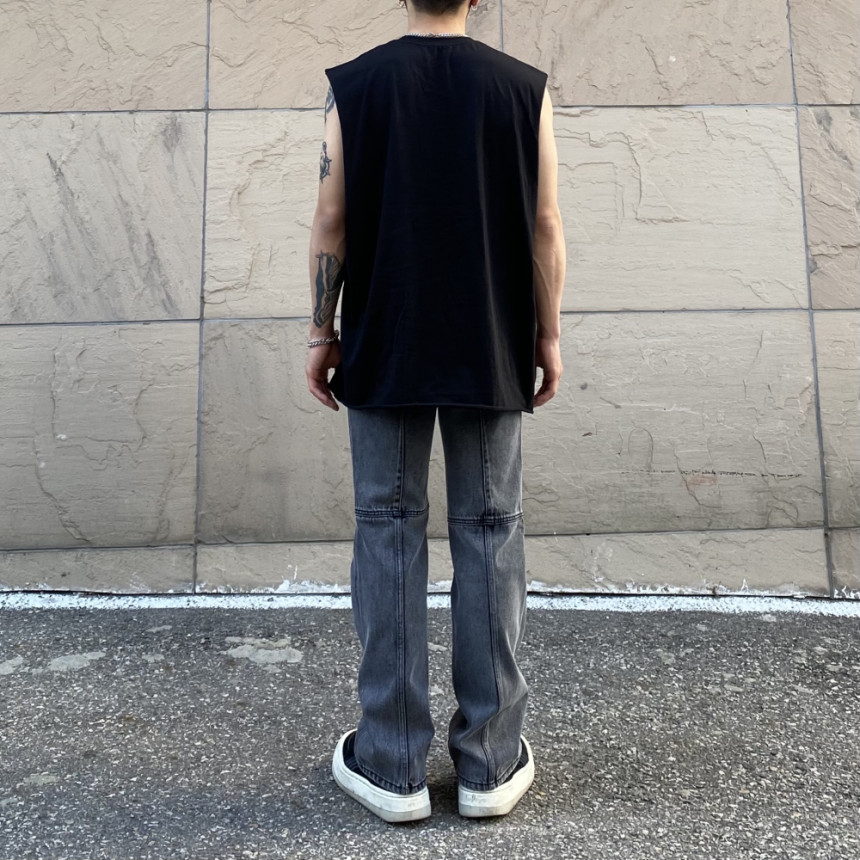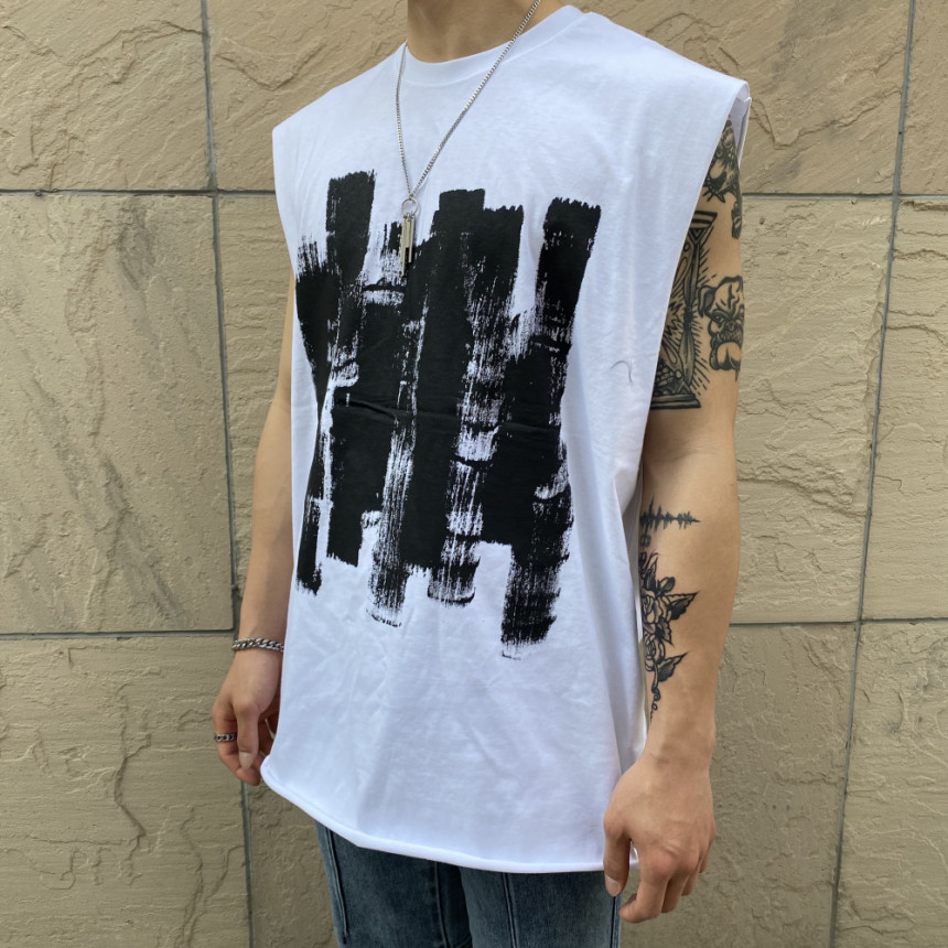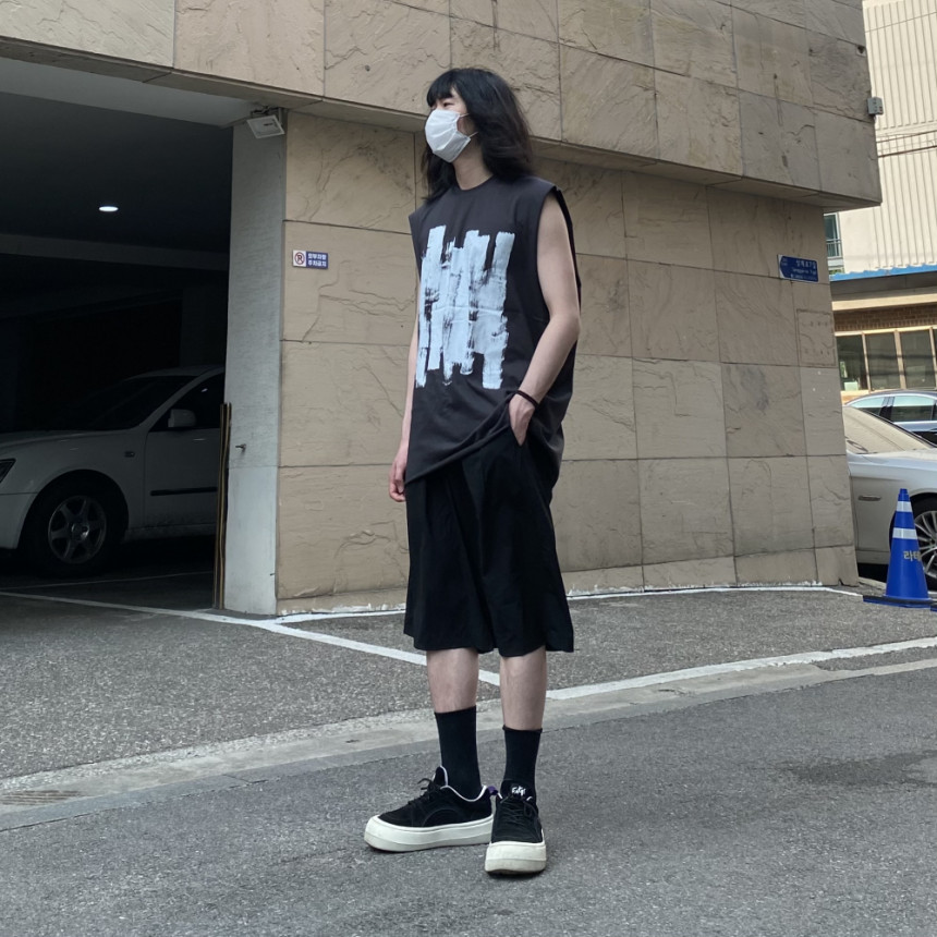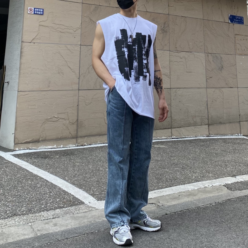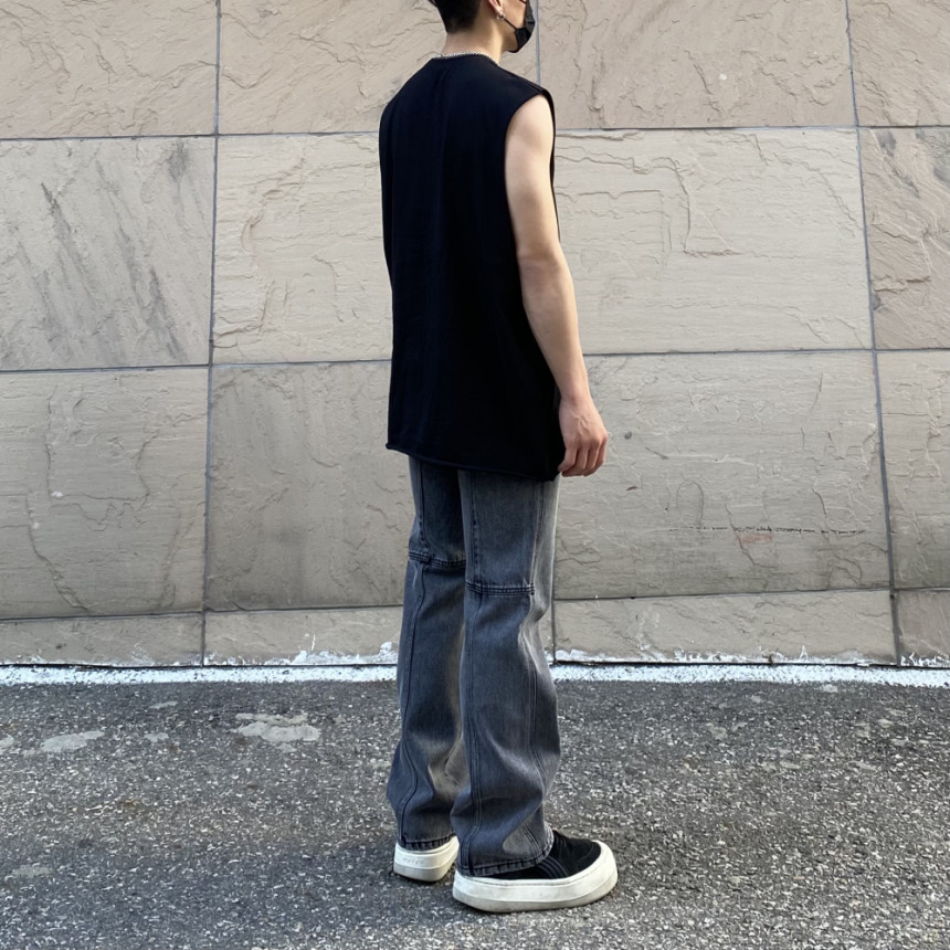 - 無袖長肩寬增加了街頭感,垂直落下的輪廓。