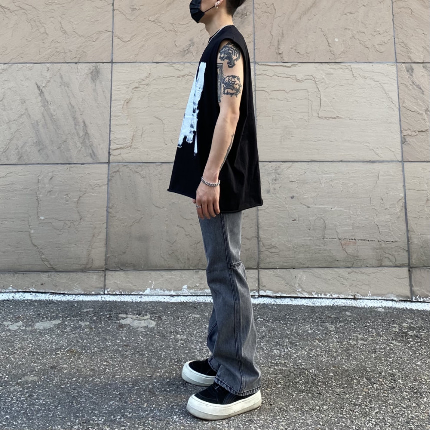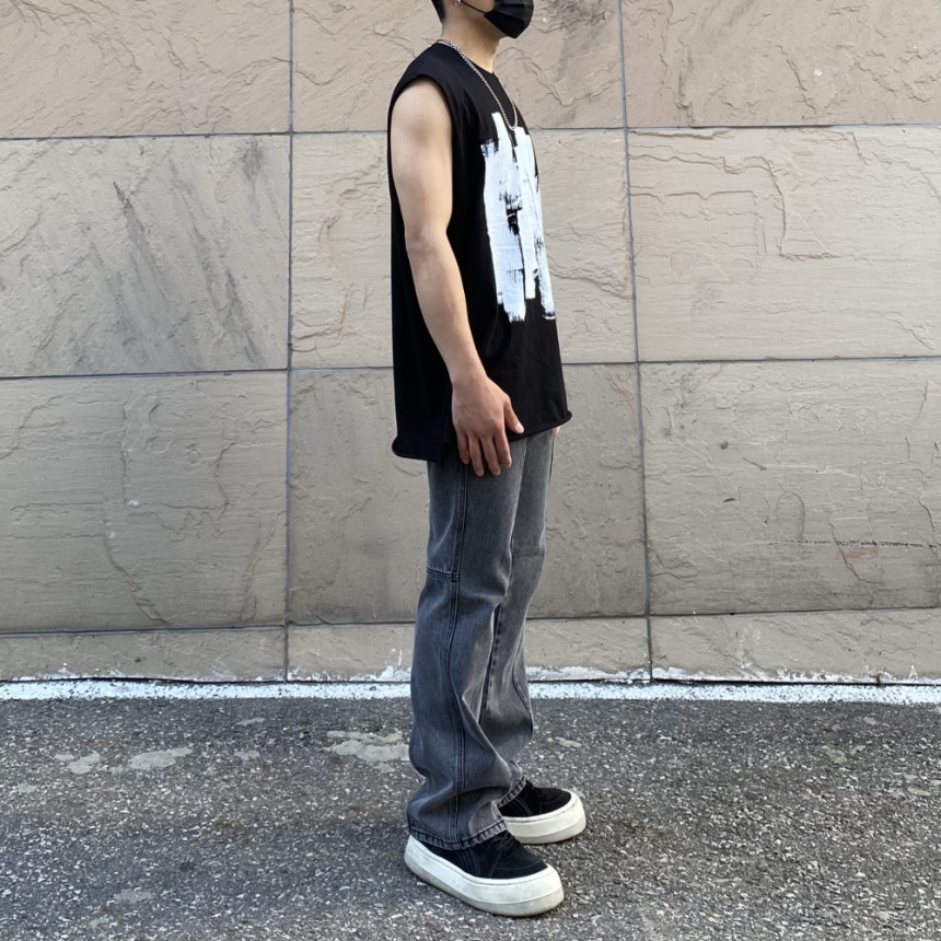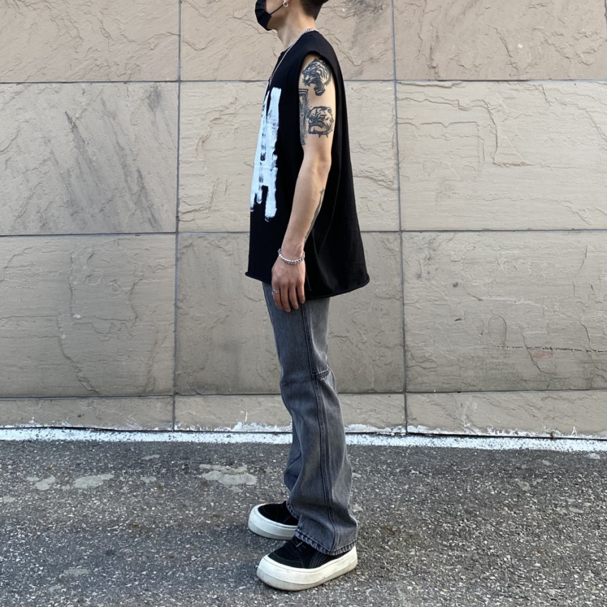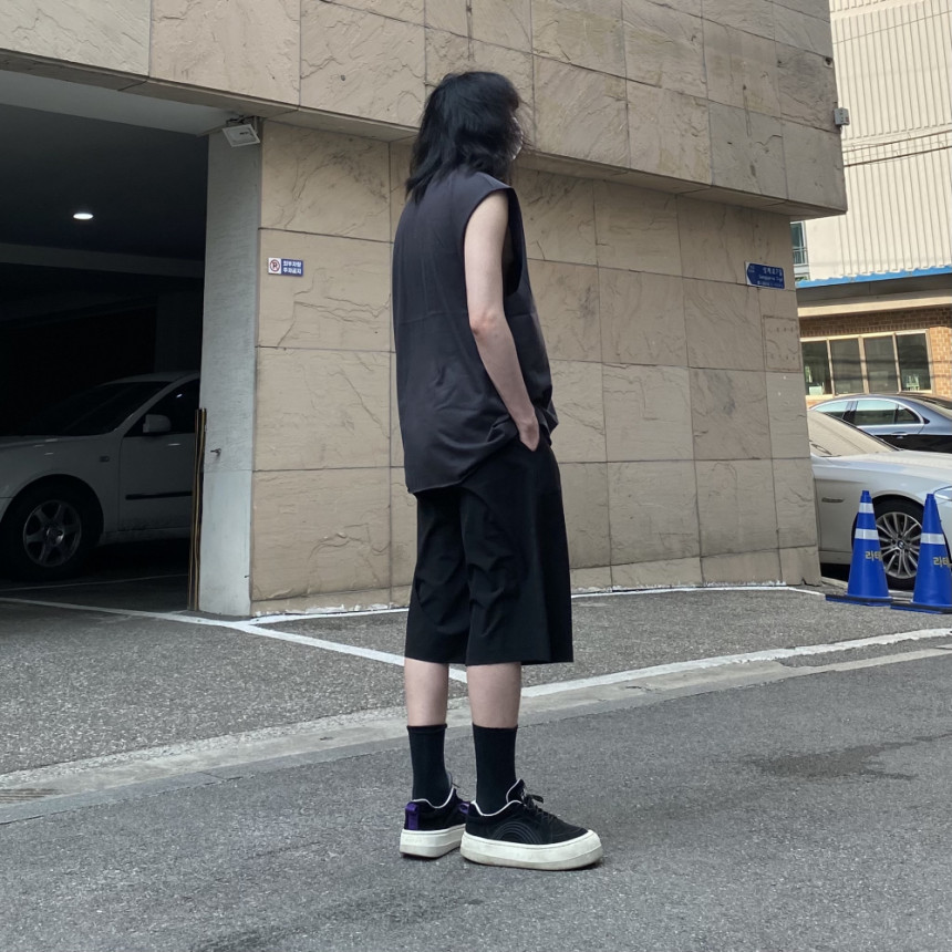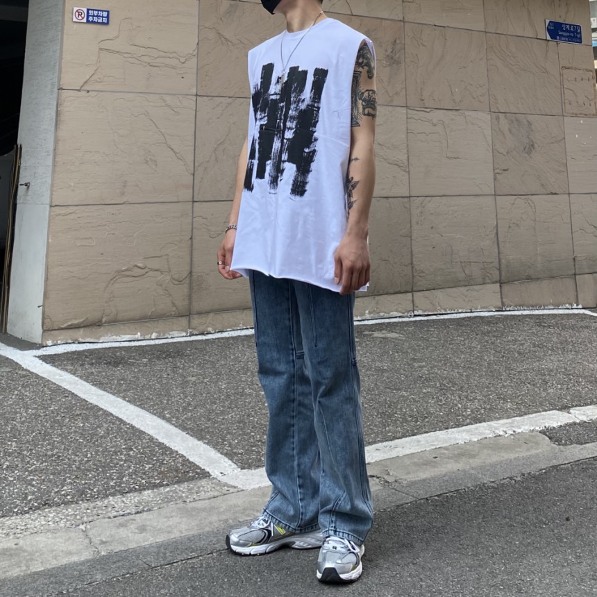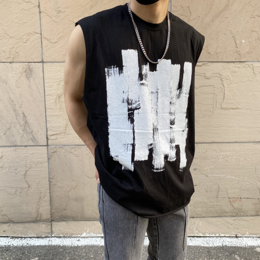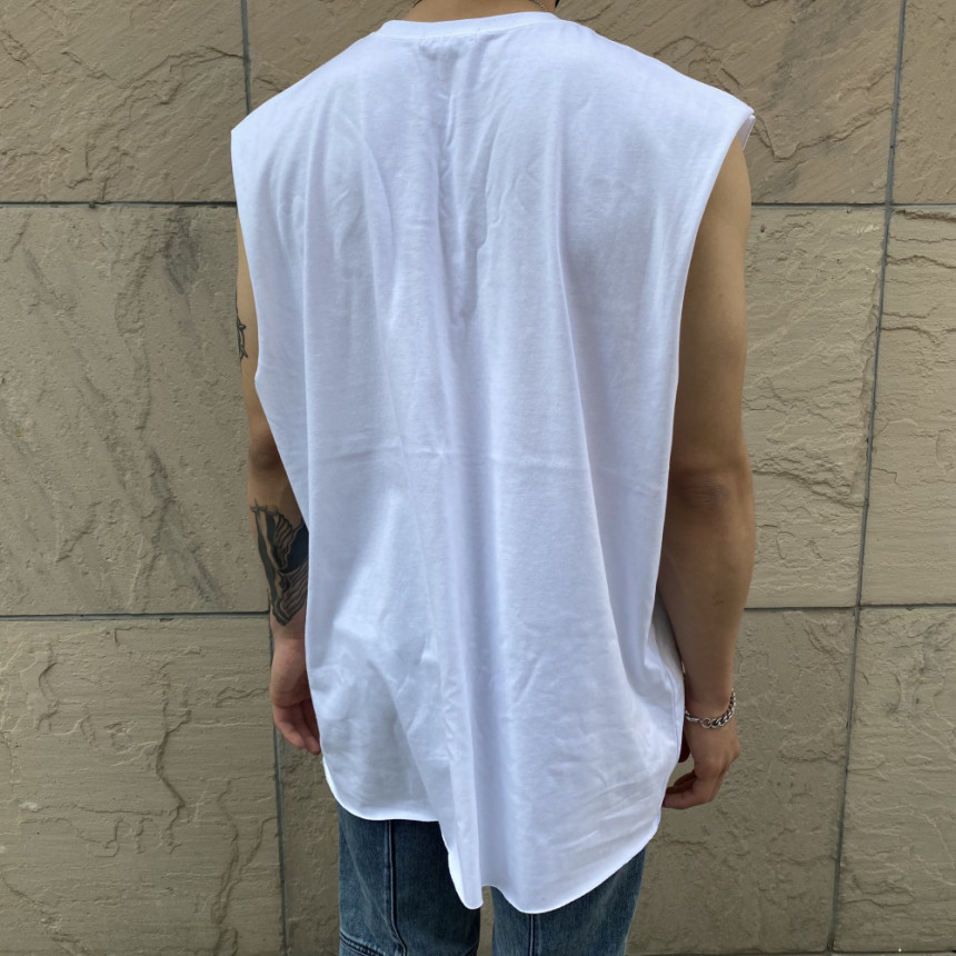- 無袖長肩寬增加了街頭感,垂直落下的輪廓。