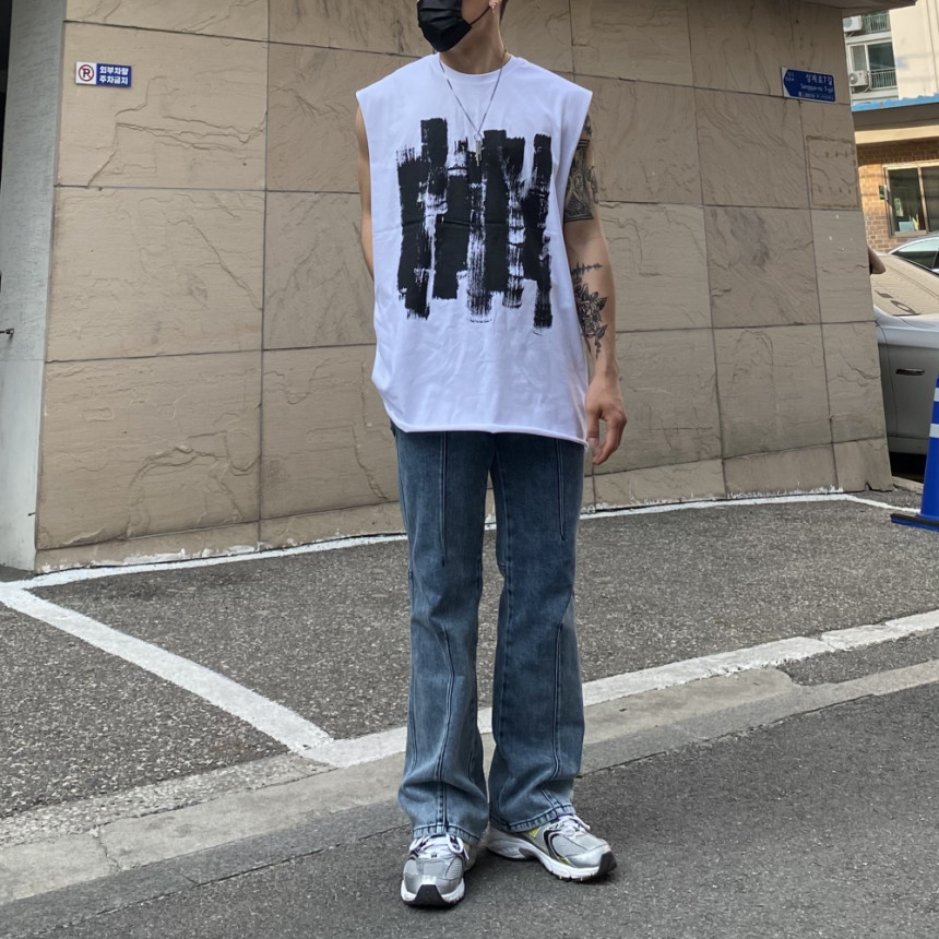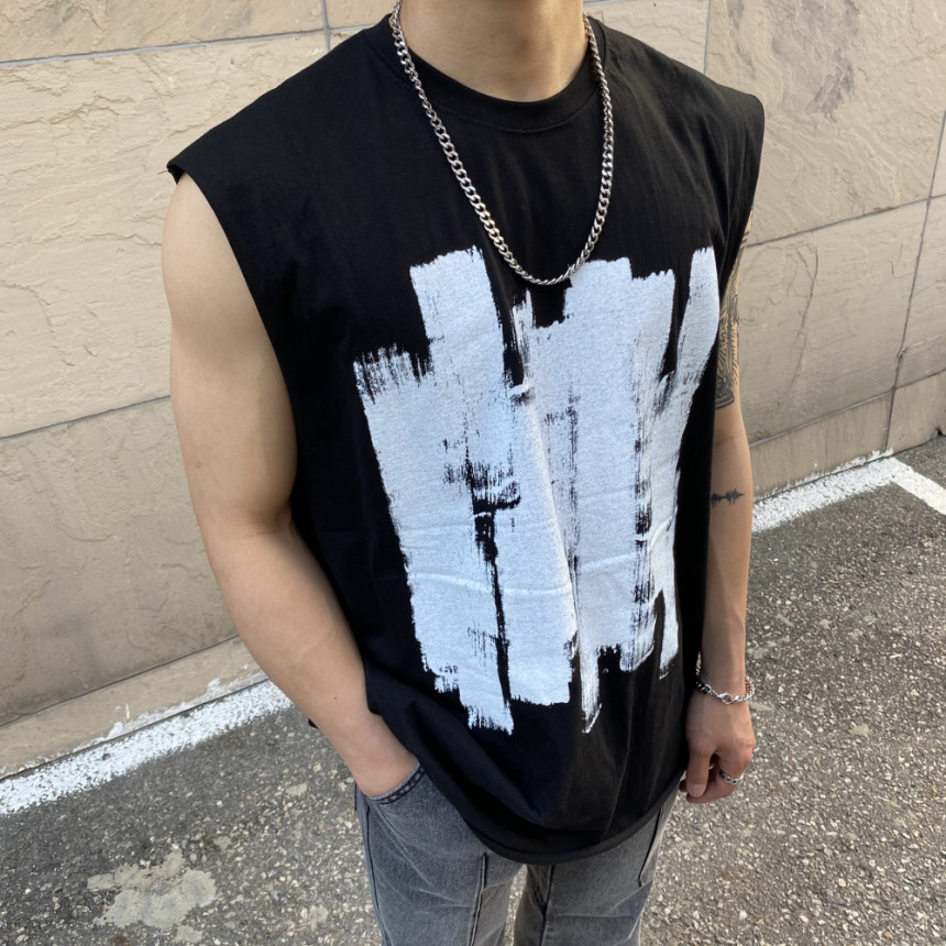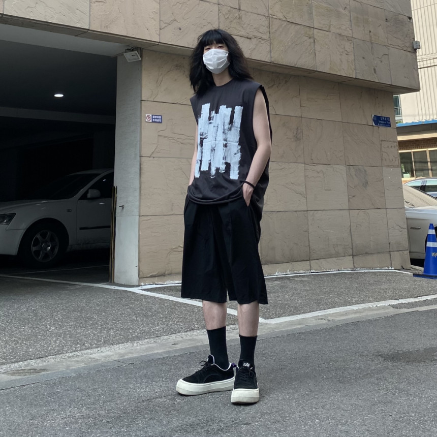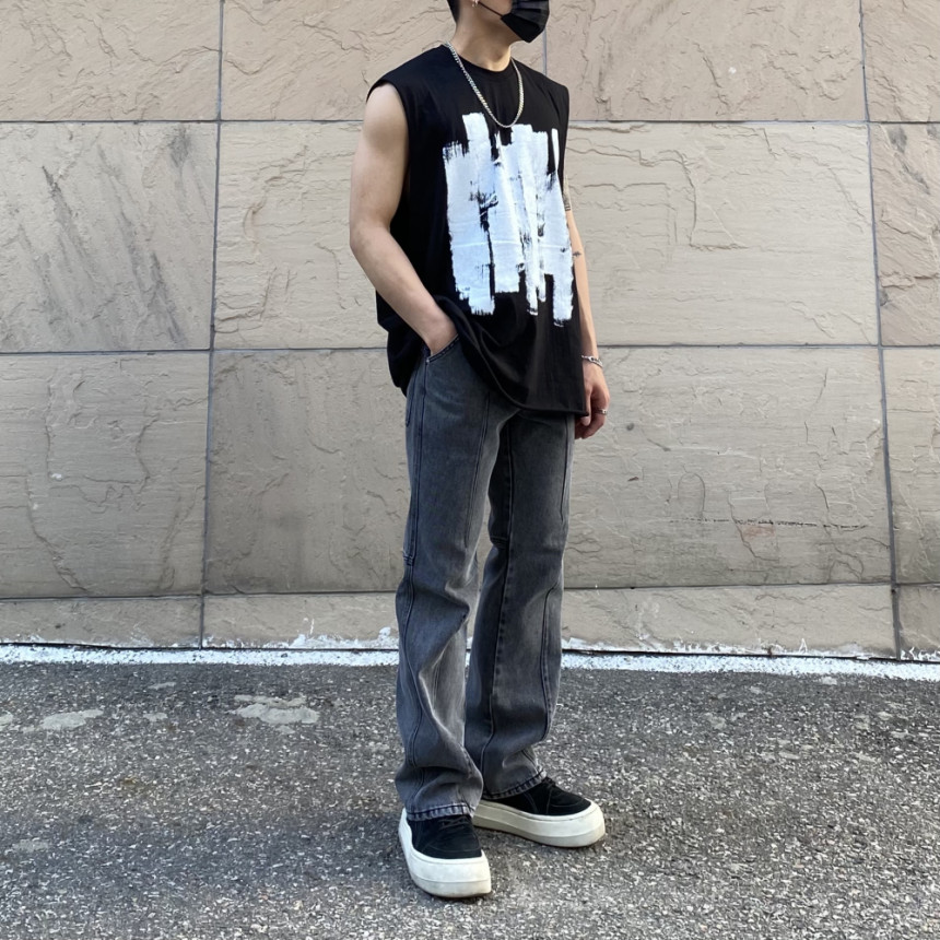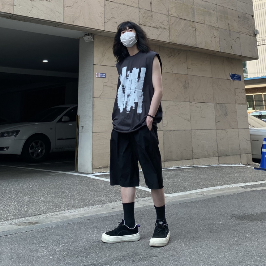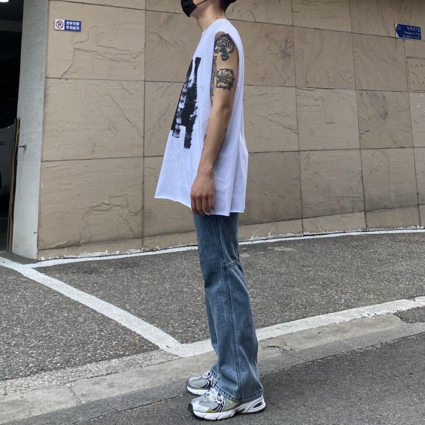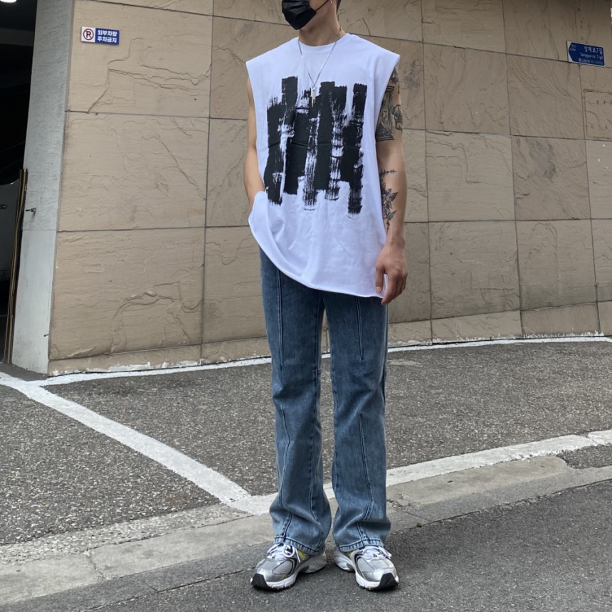 - 無袖長肩寬增加了街頭感,垂直落下的輪廓。