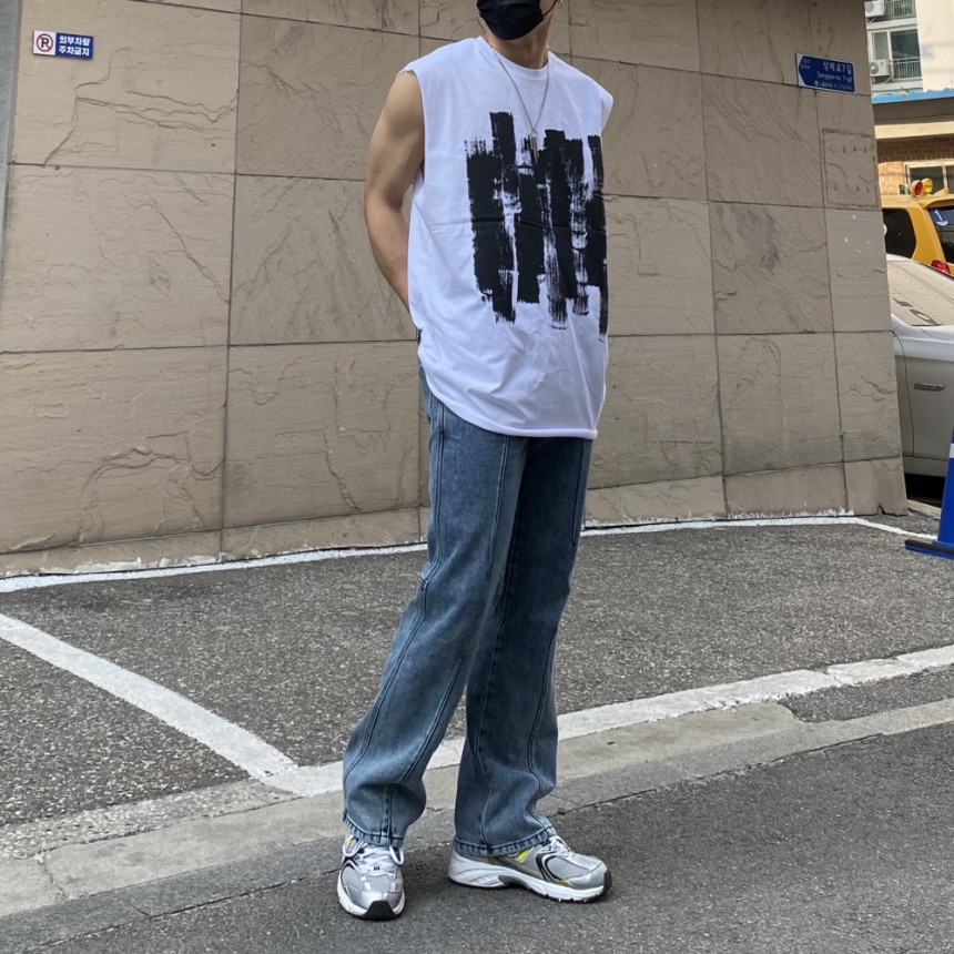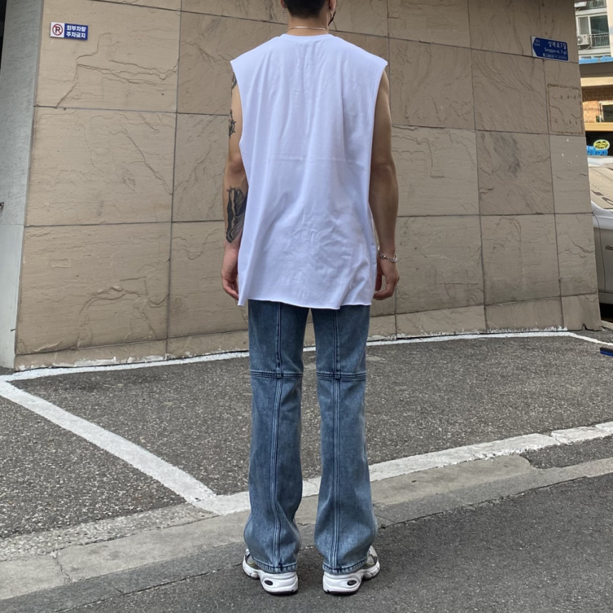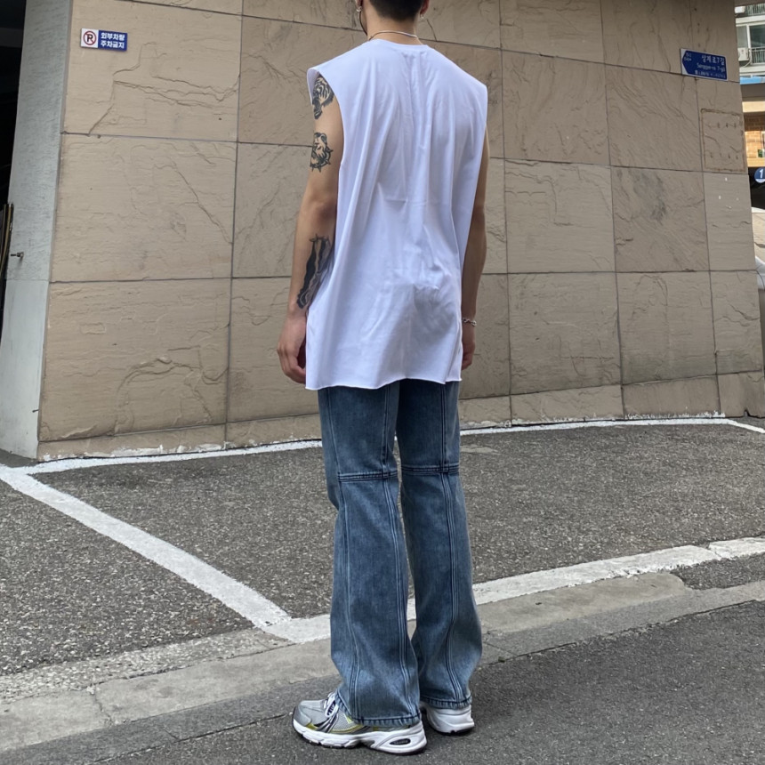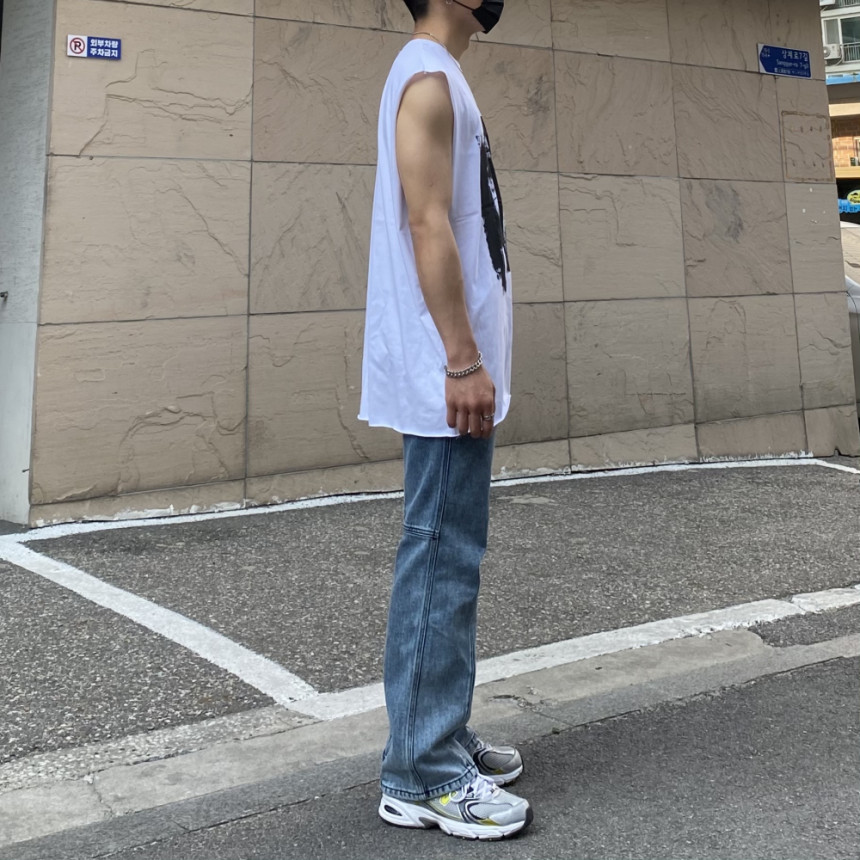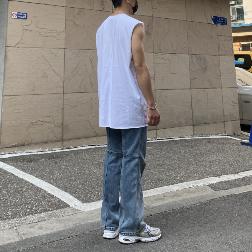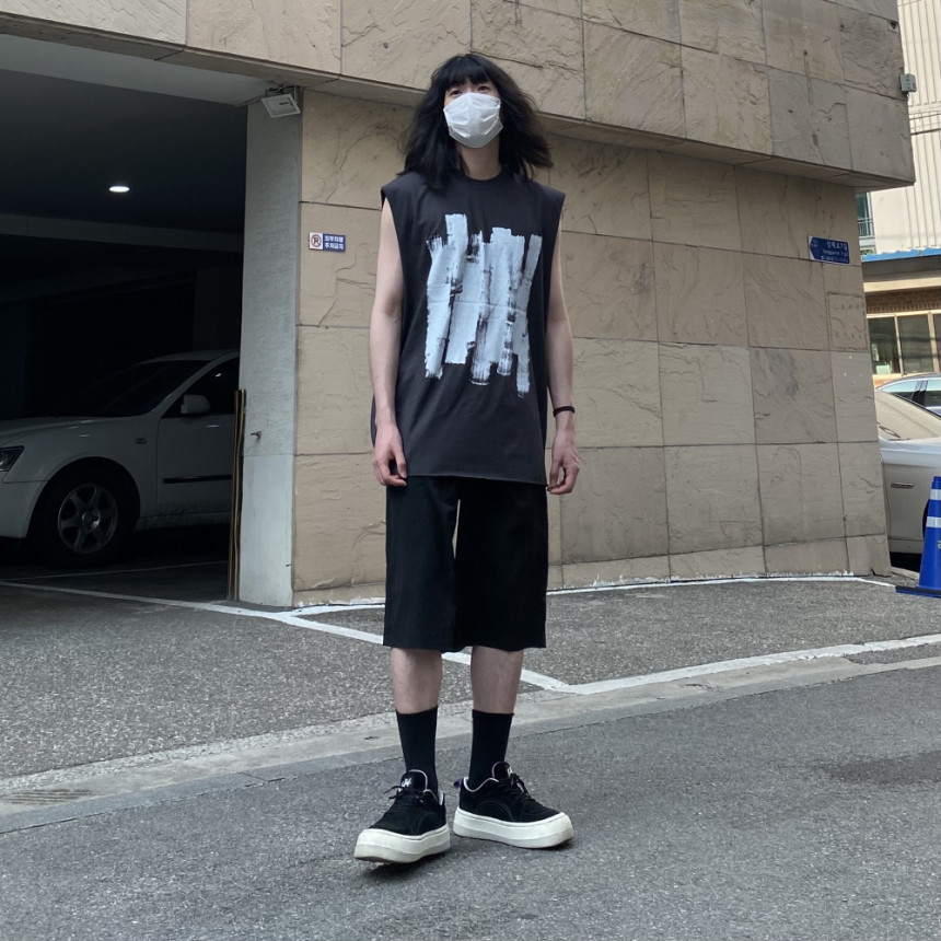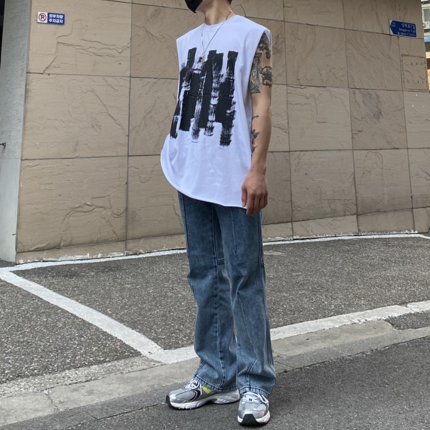 - 無袖長肩寬增加了街頭感,垂直落下的輪廓。