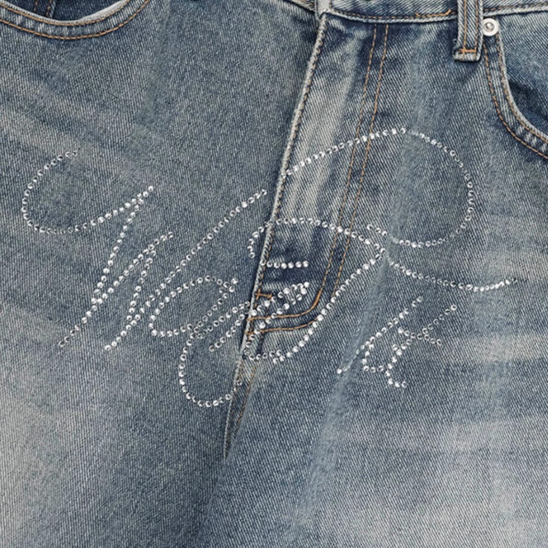 - 以堅固耐用的牛仔布料製成的字母印花長褲