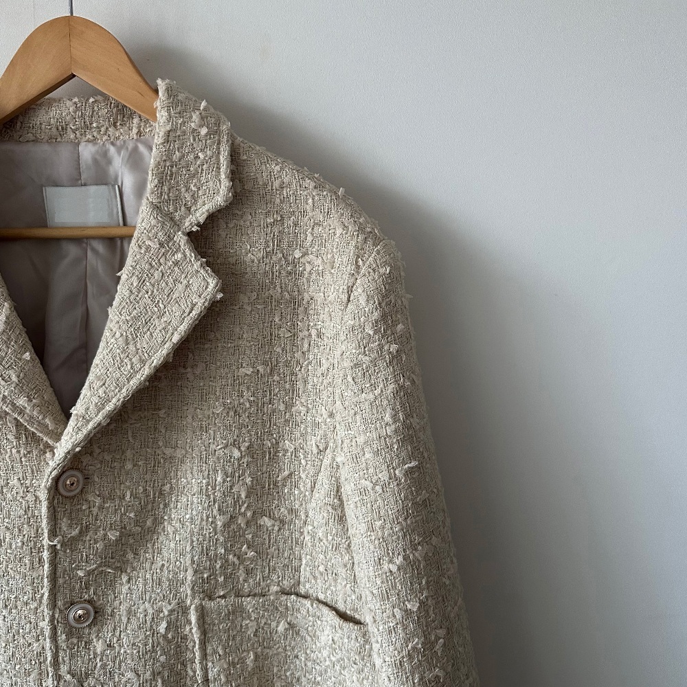 這款奢華的粗呢外套採用基礎配色和圈圈呢面料,是換季和初冬的理想之選。