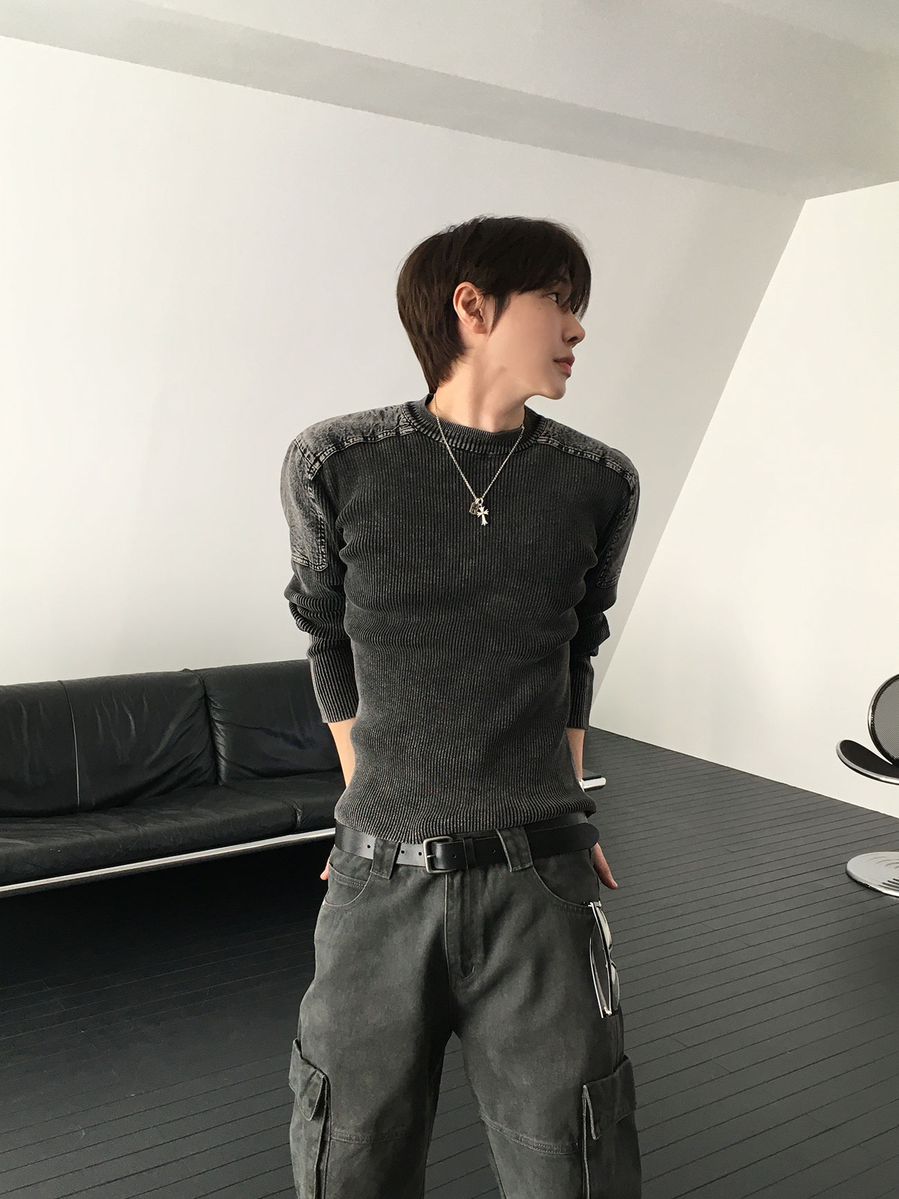 - 肩部拼接細節,勾勒出鮮明的上身輪廓。