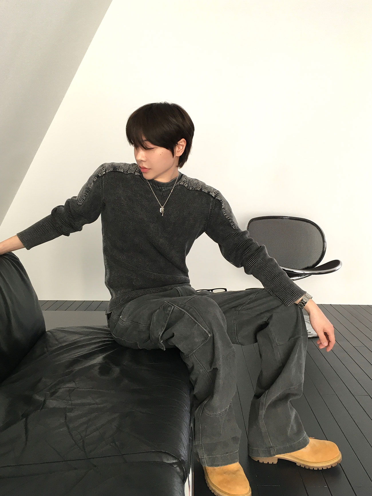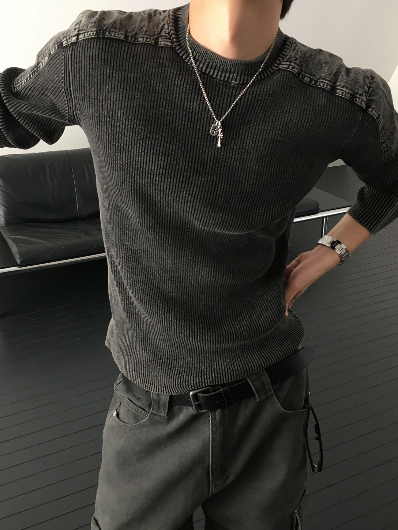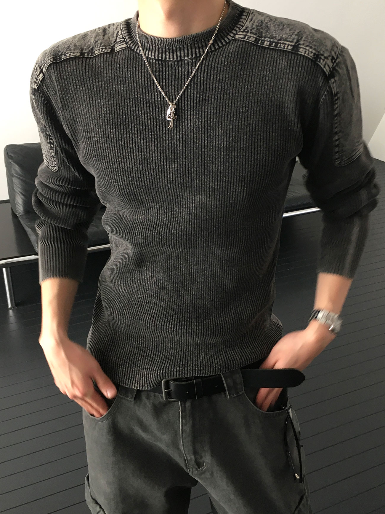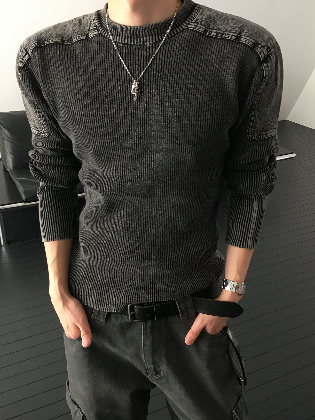 - 針織設計,兼具復古與陽剛氣息。