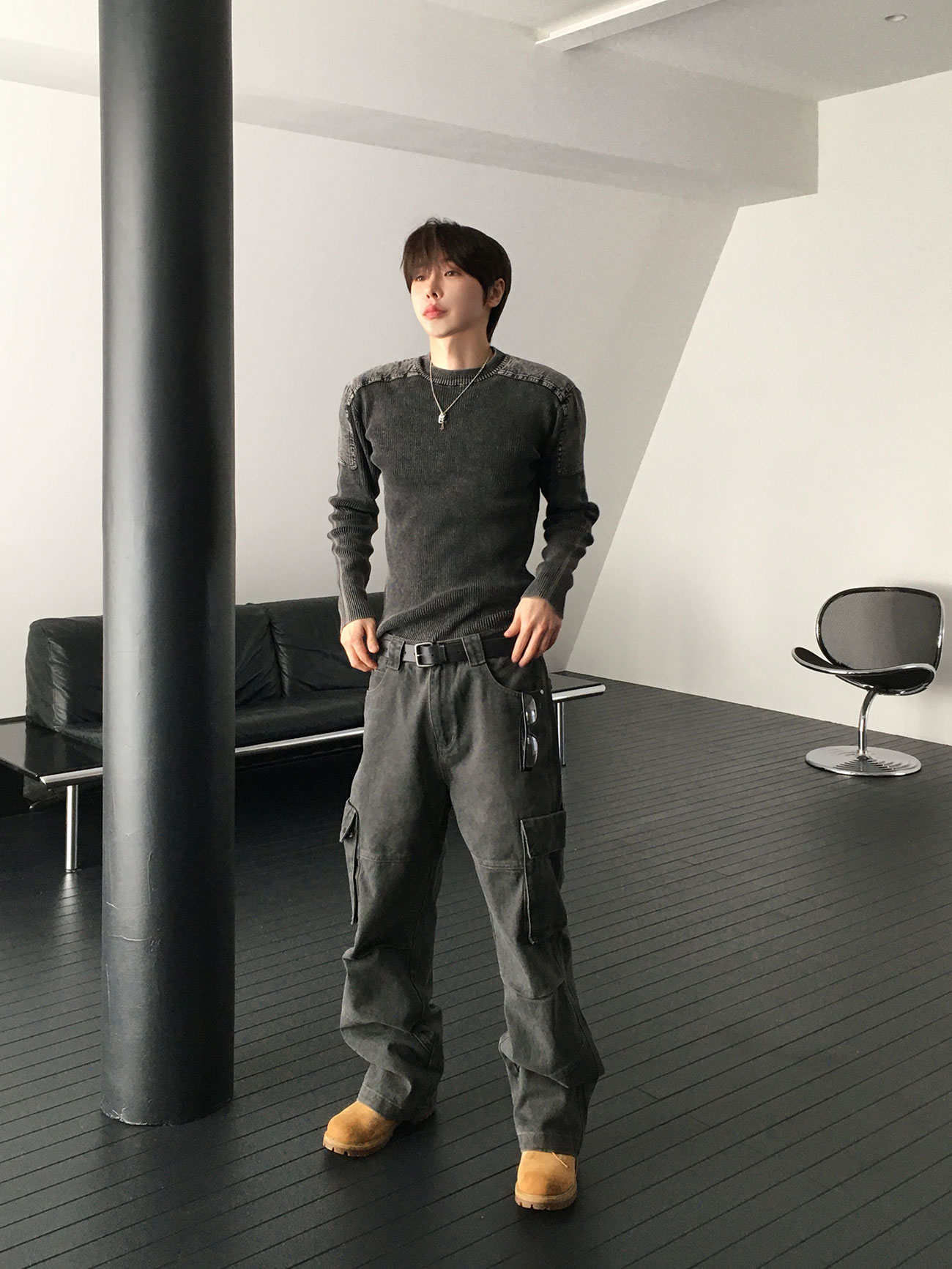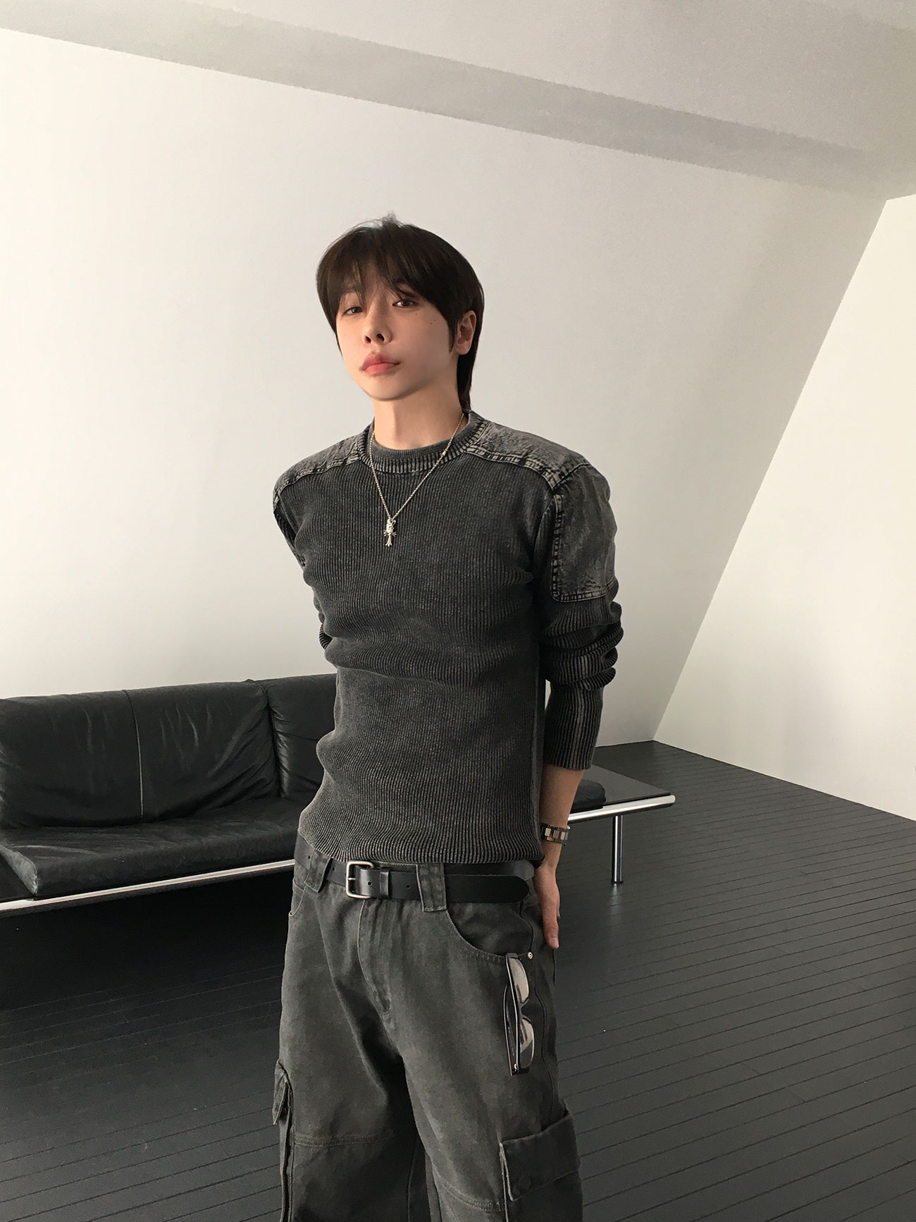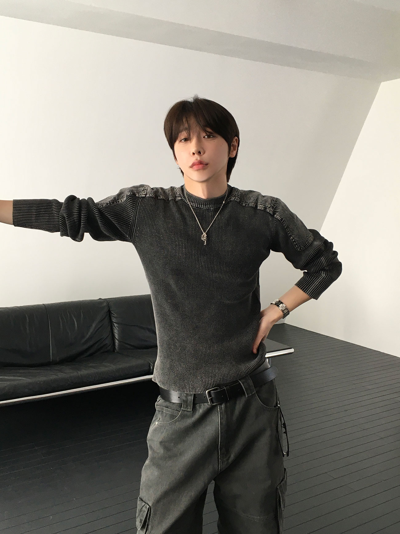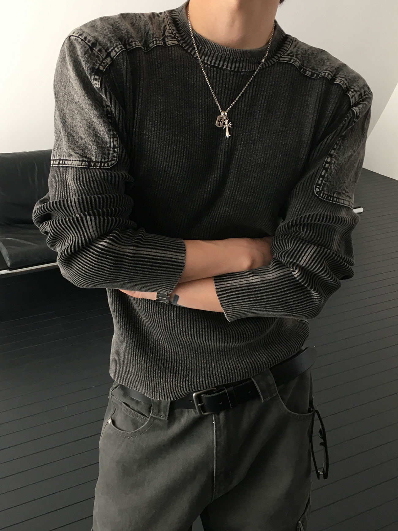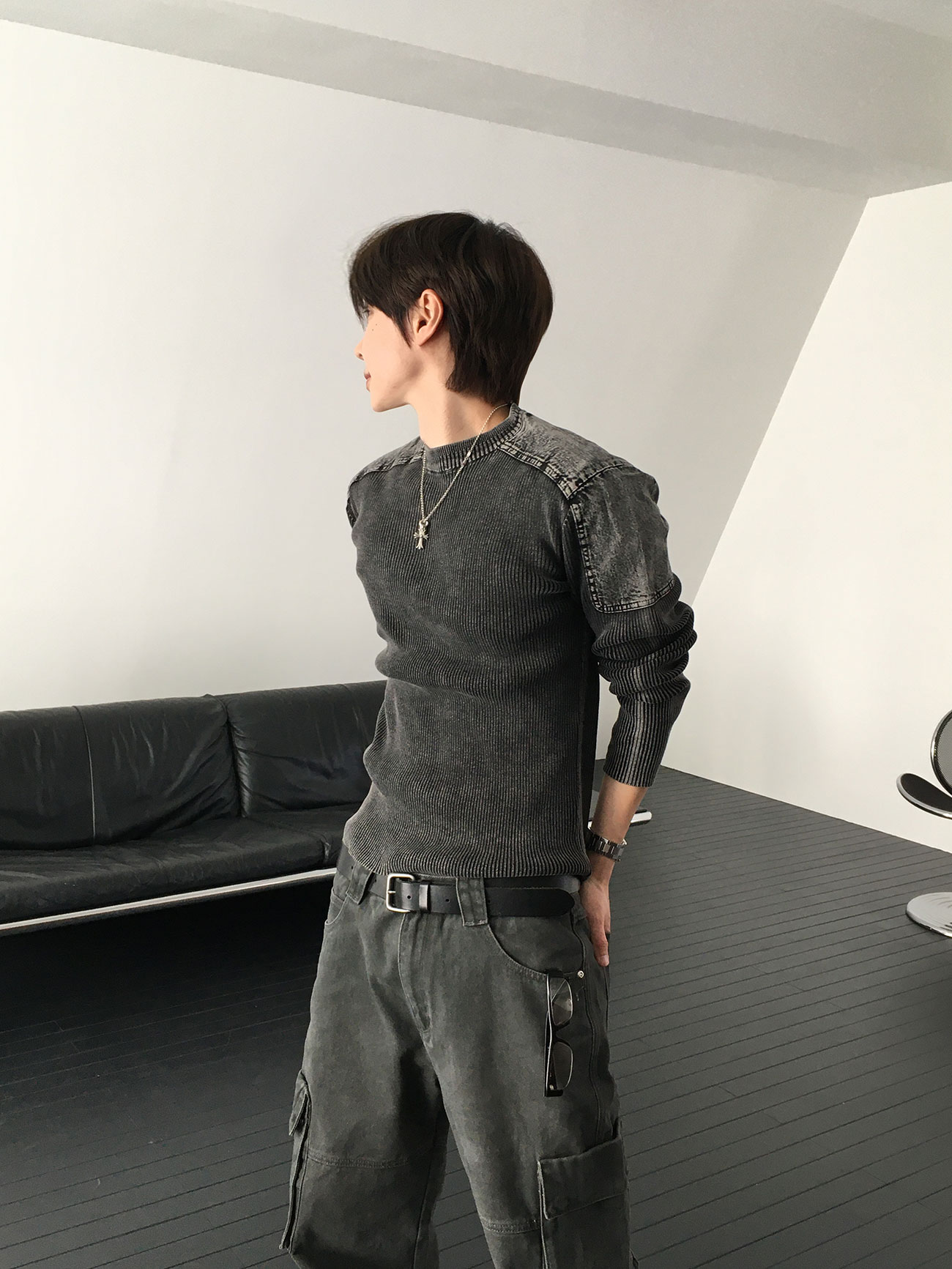 - 針織設計,兼具復古與陽剛氣息。