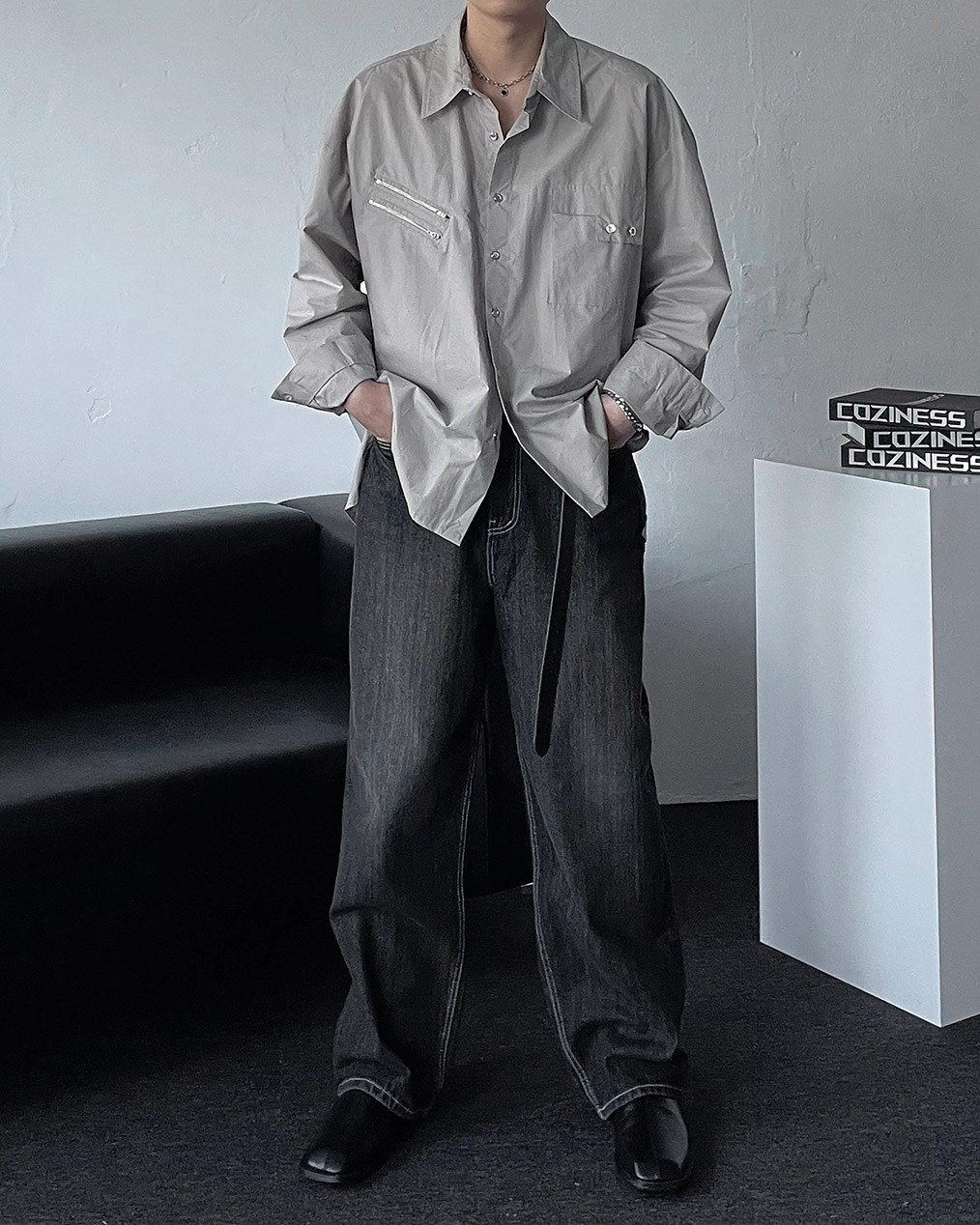 - 突顯按扣、正面拉鍊、口袋點綴、側開叉等細節制作的高品質產品。