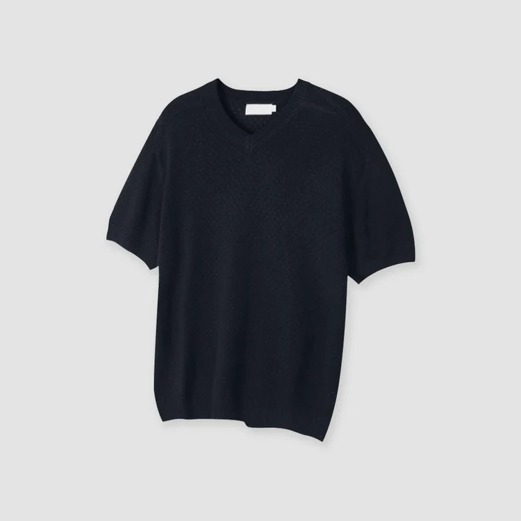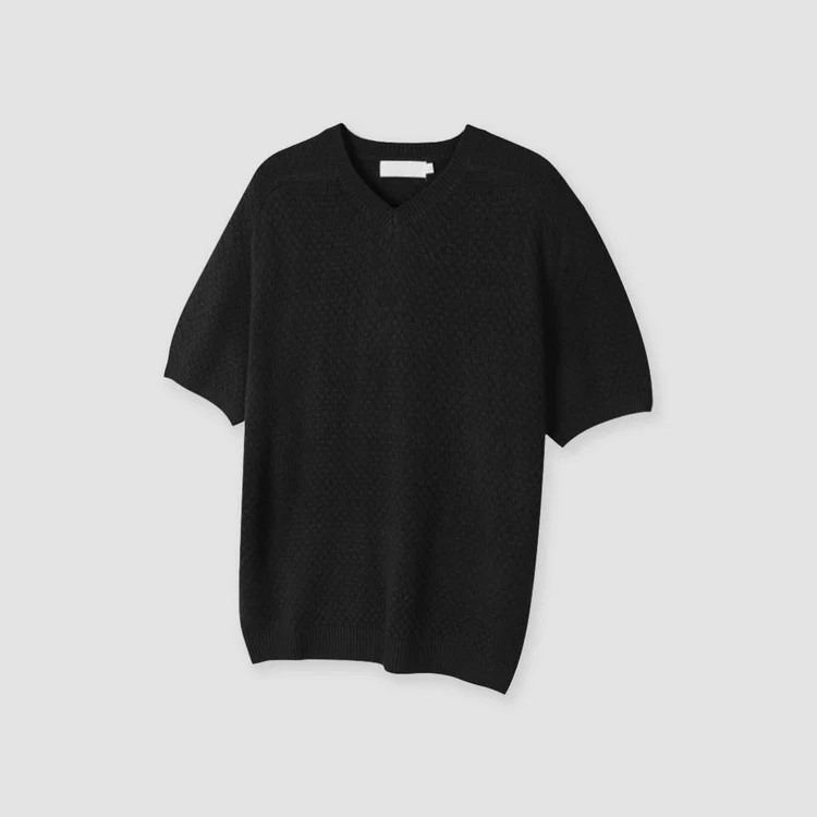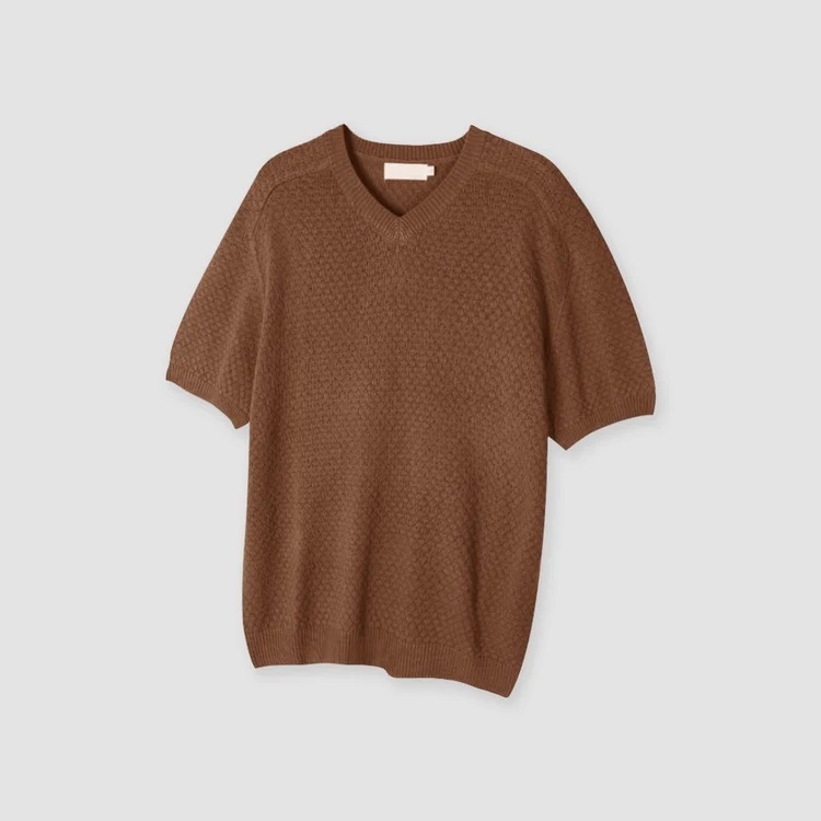 這是一款具有男性輪廓的針織衫,採用微妙的紋理編織而成。